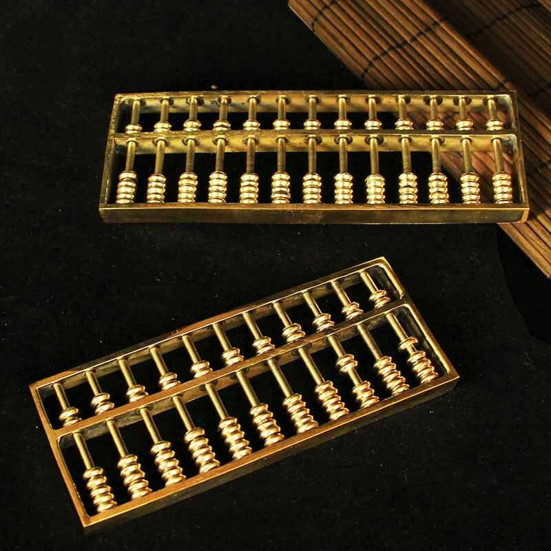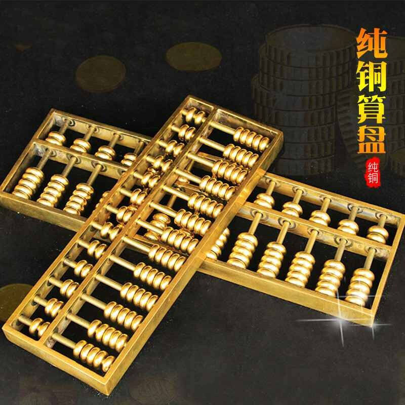 赢融升纯黄铜大小号算盘摆件铜算盘钥匙扣如意金算盘珠算铜开业礼