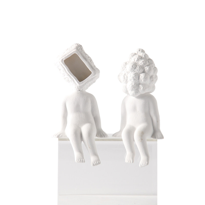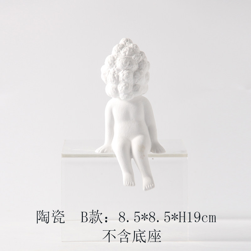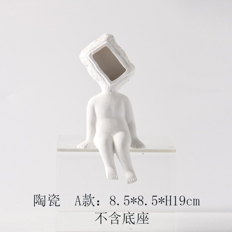 现代简约白色陶瓷抽象人物坐姿雕塑摆件样板间客厅书房儿童房装饰