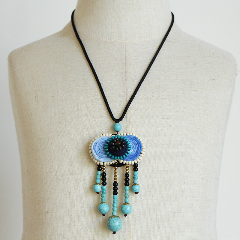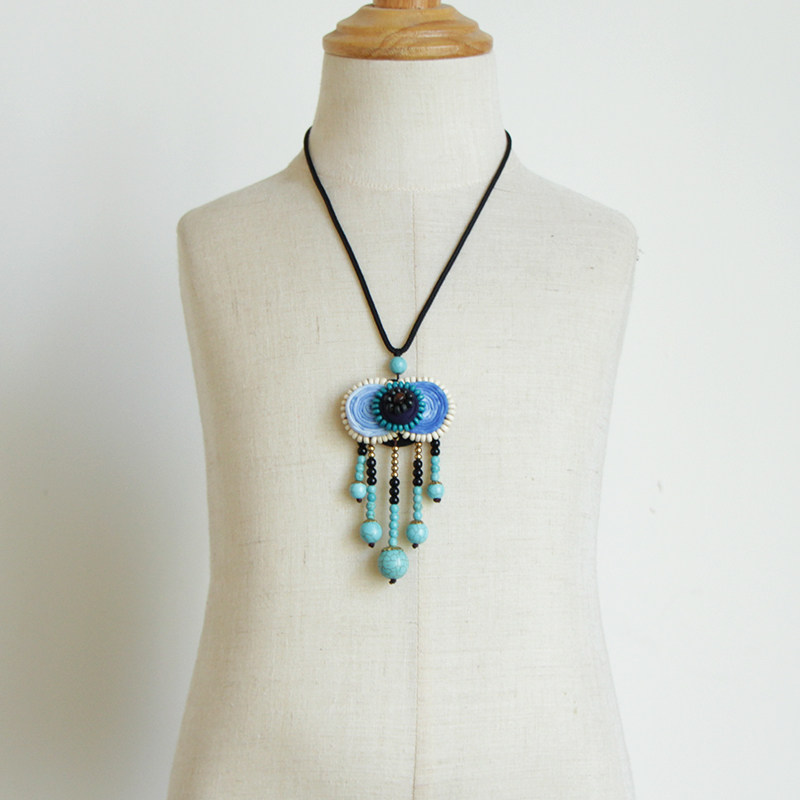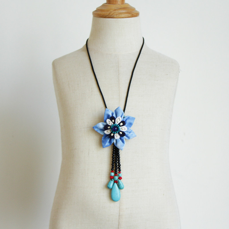 民族风复古蓝色扎染项链中国挂饰风百搭长款搭配文艺蓝染原创毛衣