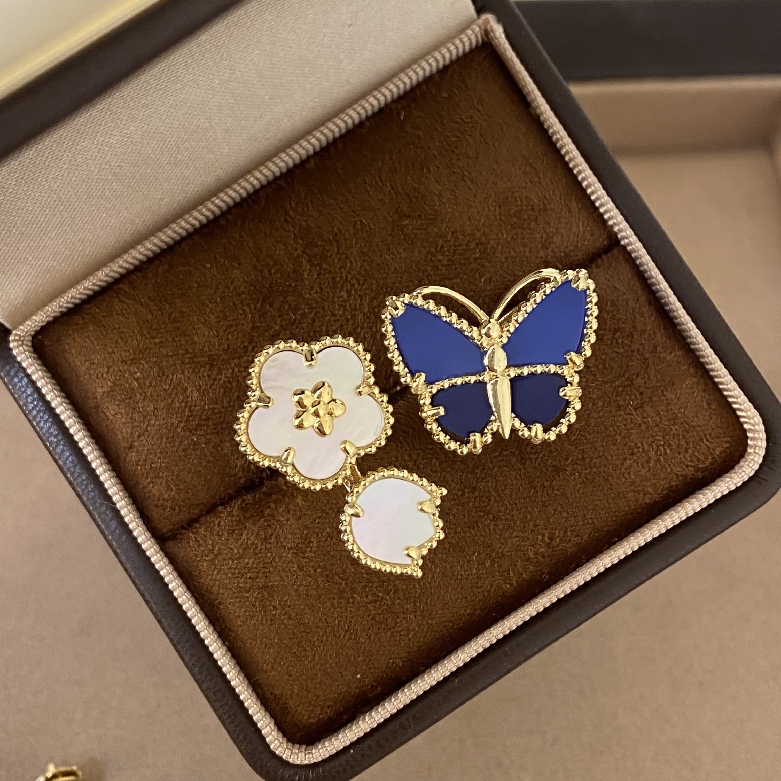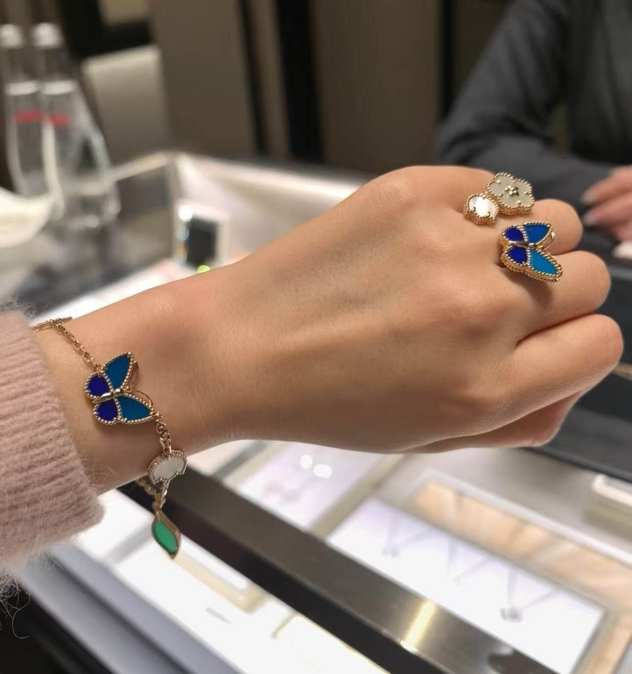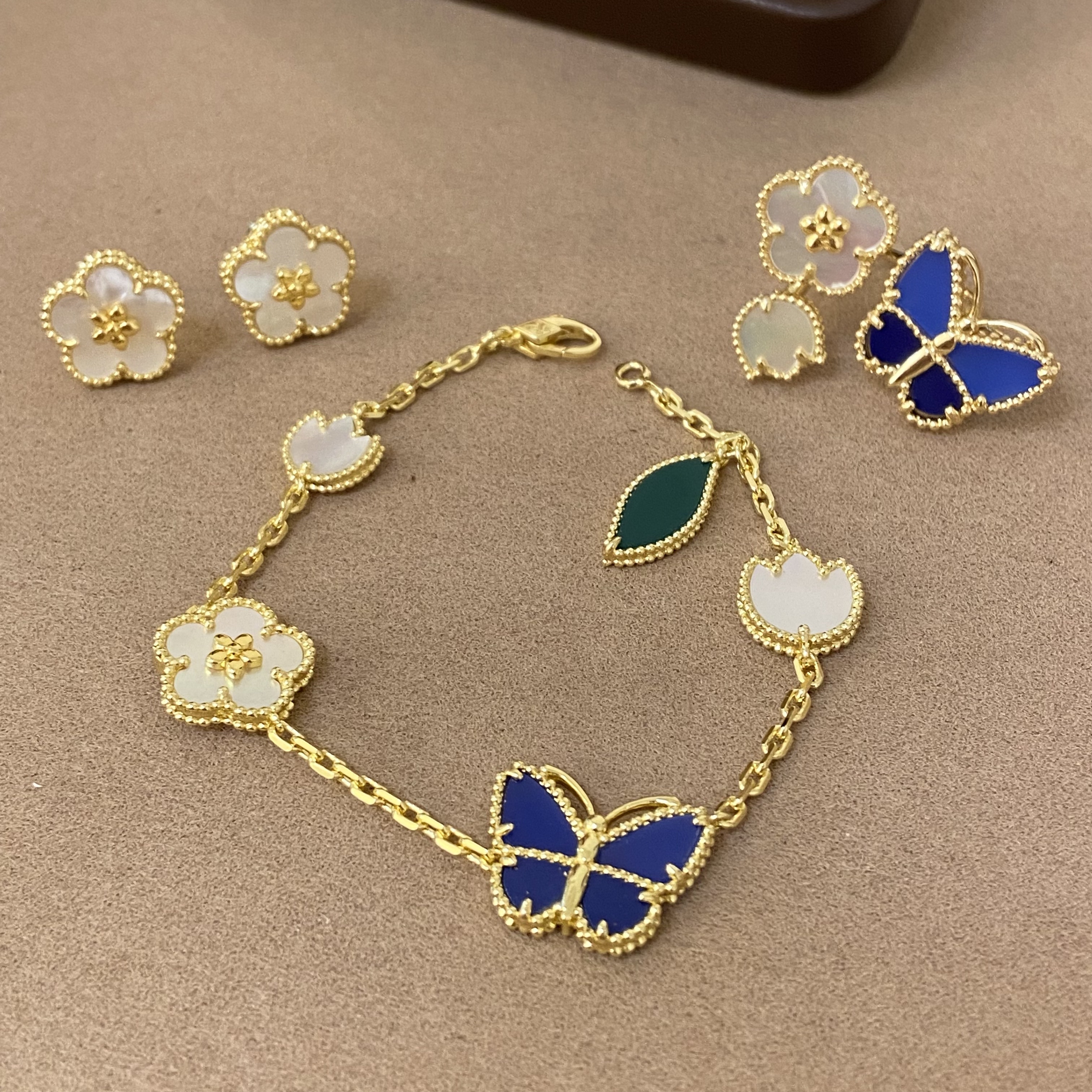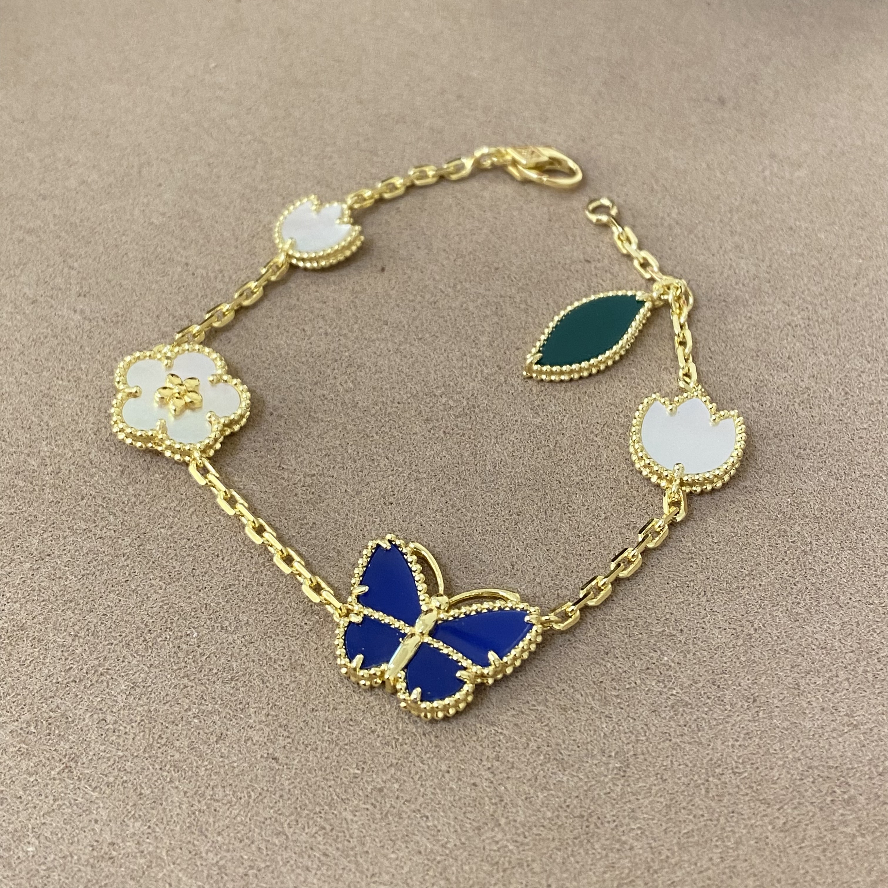 新款lucky蓝色蝴蝶花朵手链五花天然白贝母高品质首饰欧美时尚女