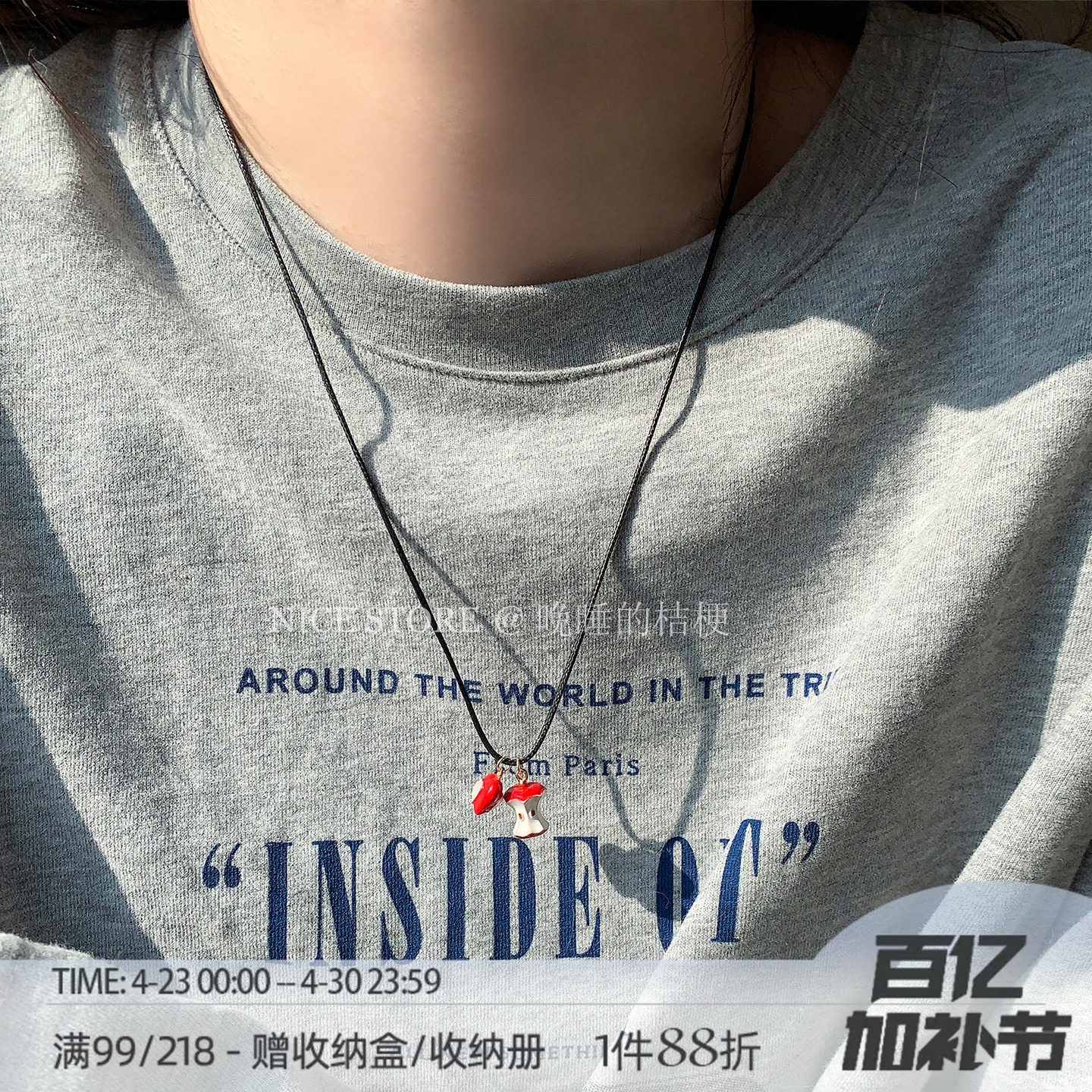 晚睡的桔梗「红苹果乐园」可爱滴釉爱心苹果项链红色少女吊坠颈链