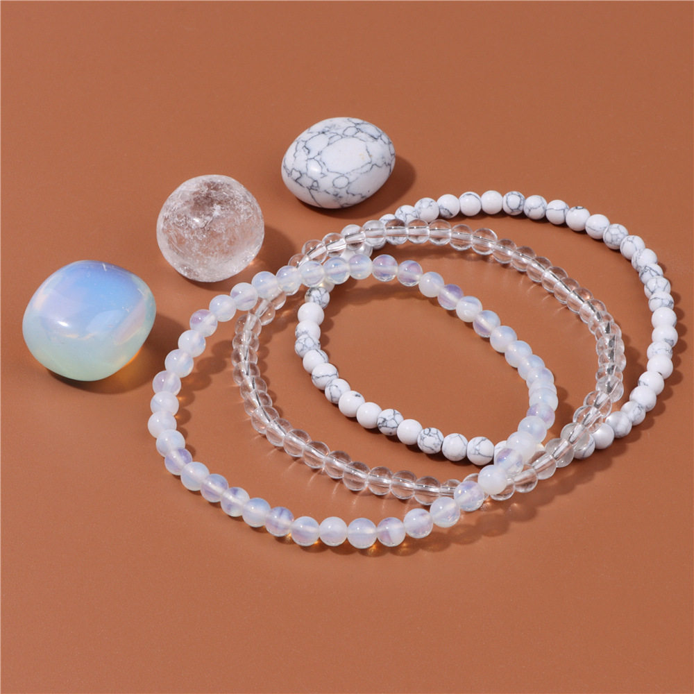 4MM stretch natural stone bead bracelet three piece set