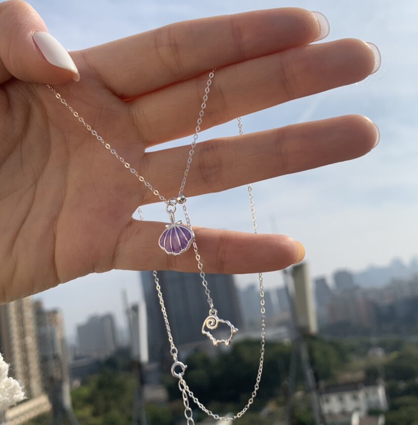 原创紫色贝壳项链张艺兴应援周边贝壳女孩专属925纯银吊坠饰首饰