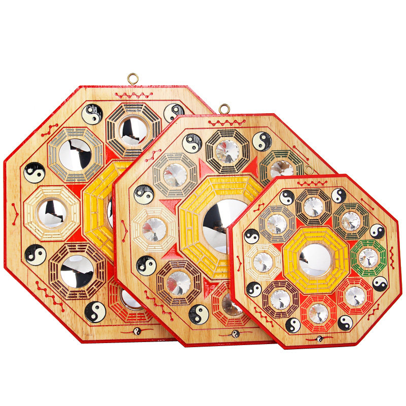 朴器 八卦镜桃木彩绘太极阴阳九宫八卦镜挂件凸镜凹镜平面镜家居