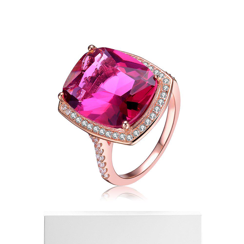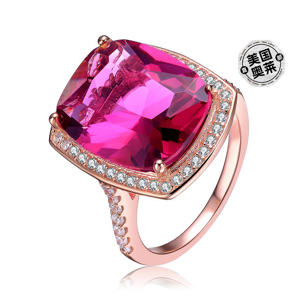 自营 geneviveGa 纯银 18k 镀玫瑰红宝石方晶锆石戒指 - 红色 美
