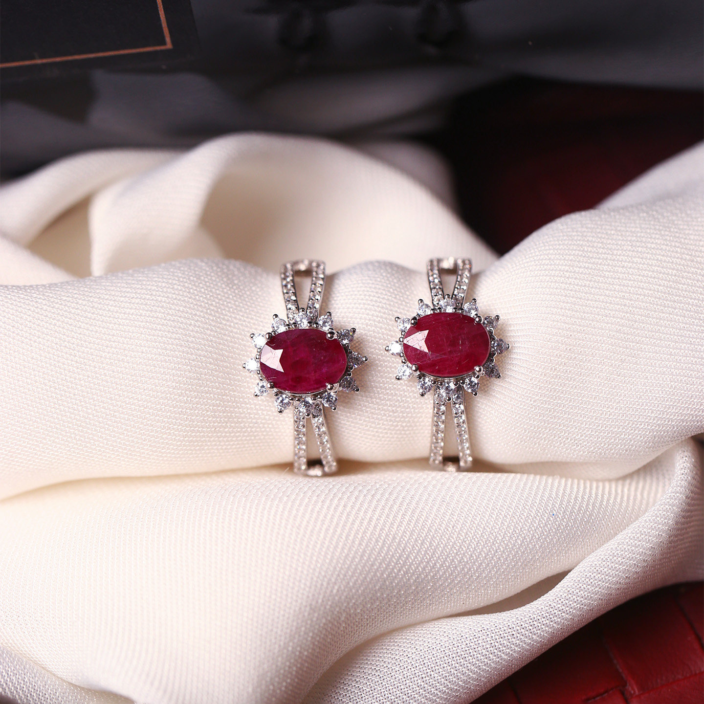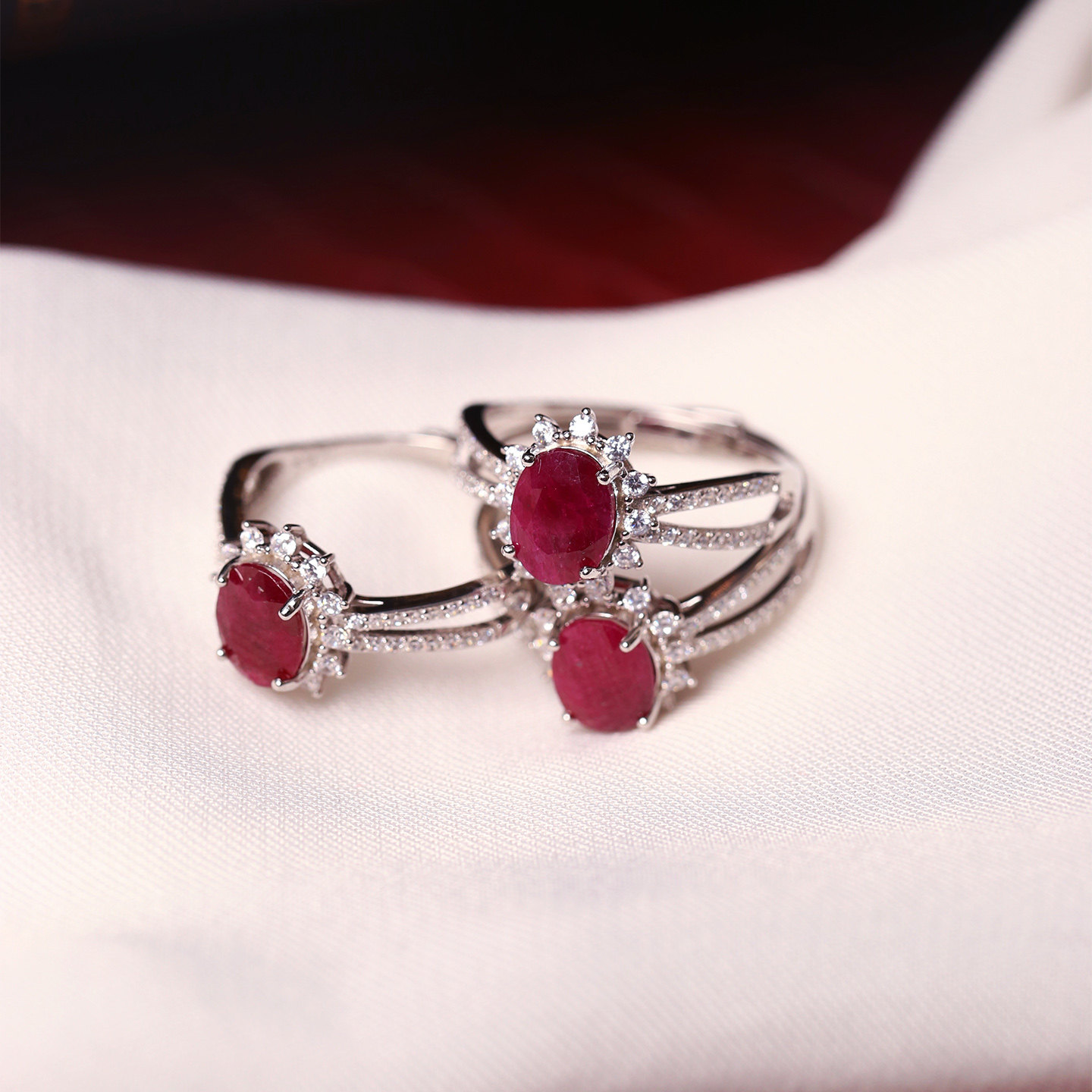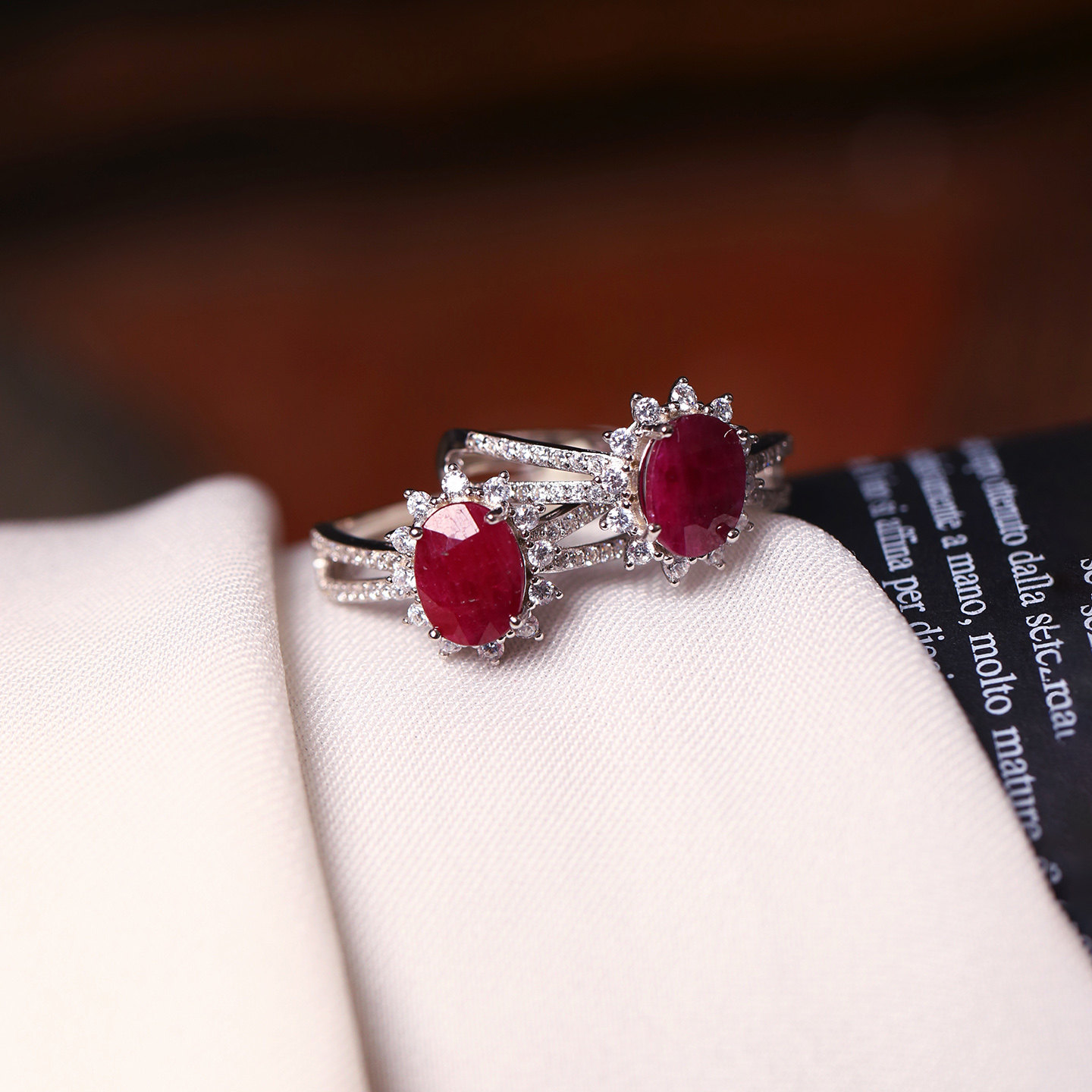 精品彩宝 天然老烧红宝石纯银托镶嵌款戒指 女款宝石指环饰品