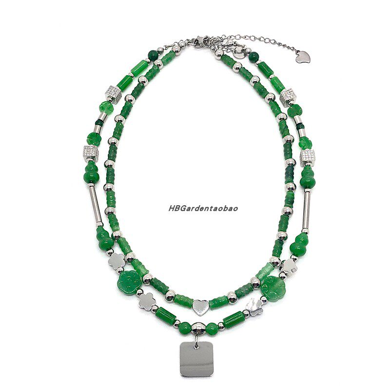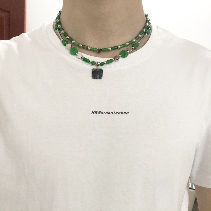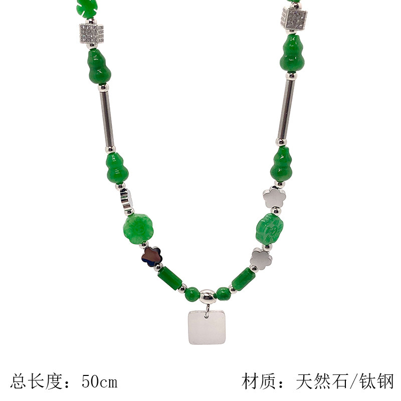王一博同款绿色玉石葫芦梅花钛钢方块吊坠项链男女个性嘻哈街舞4