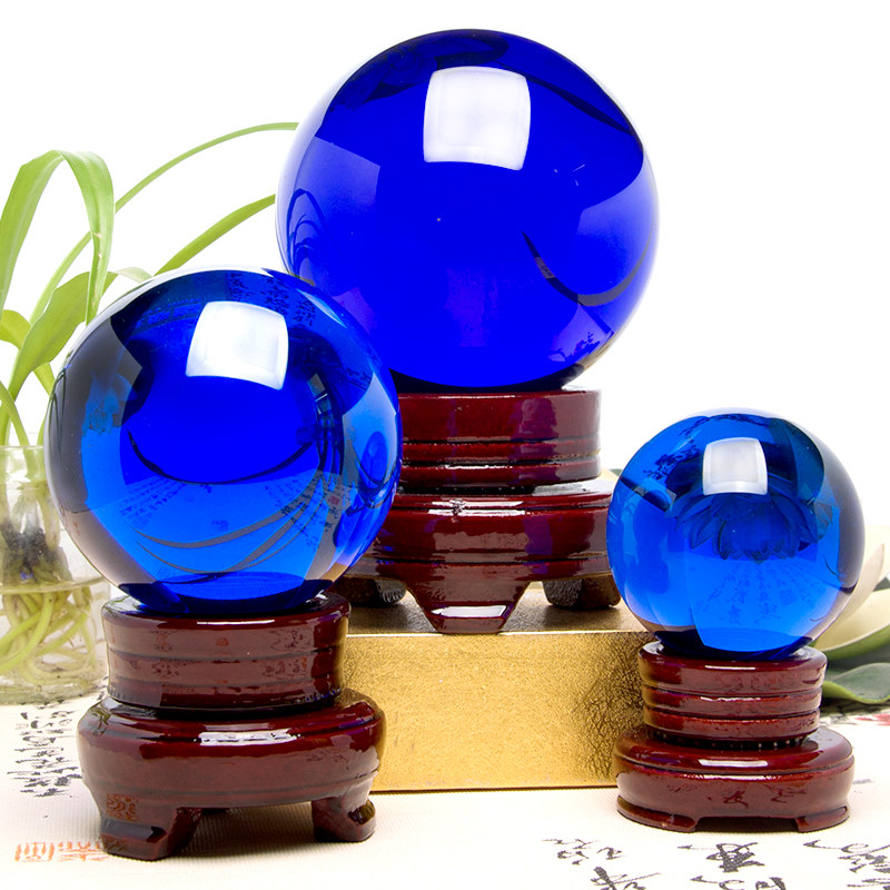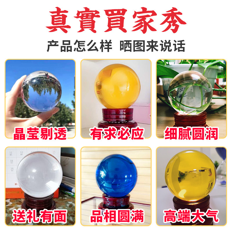 黄色白水晶球摆件天然绿紫蓝w粉红色透明玻璃球招财大小号家居饰