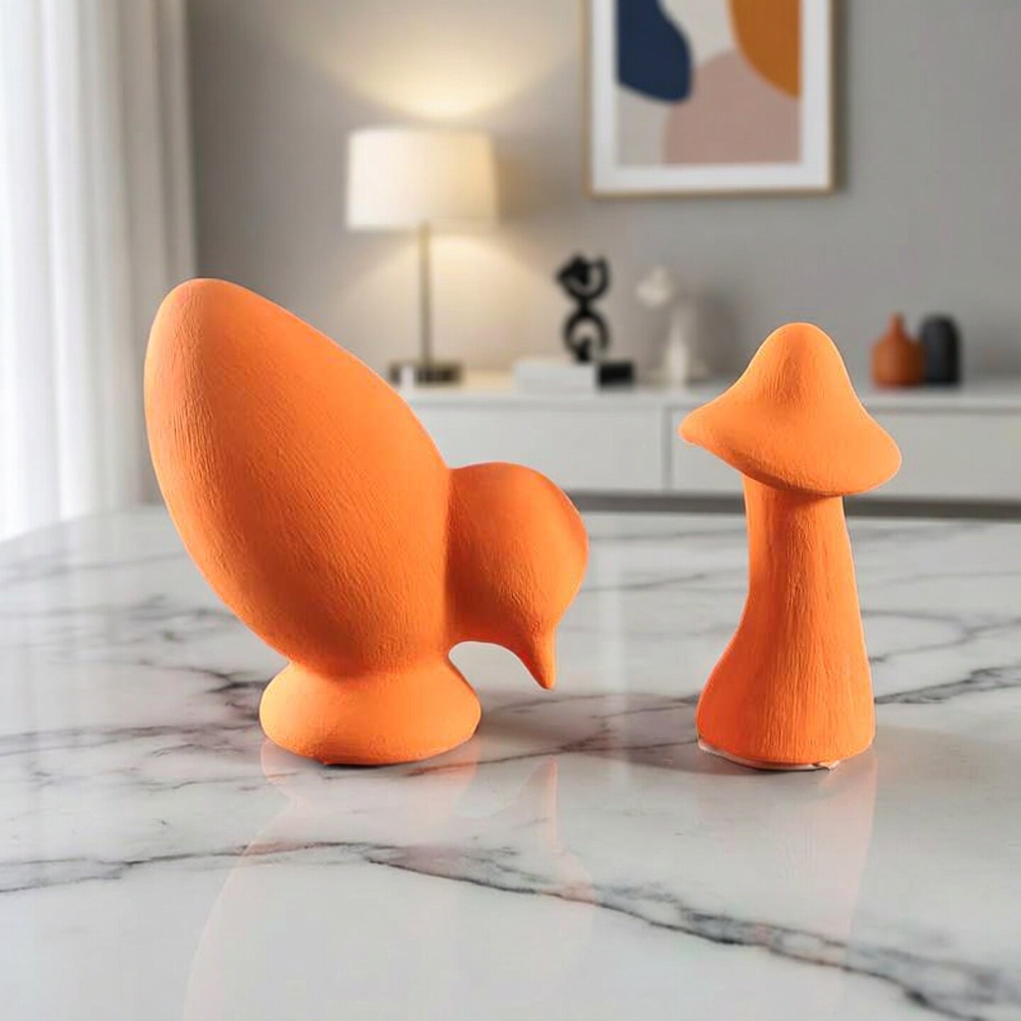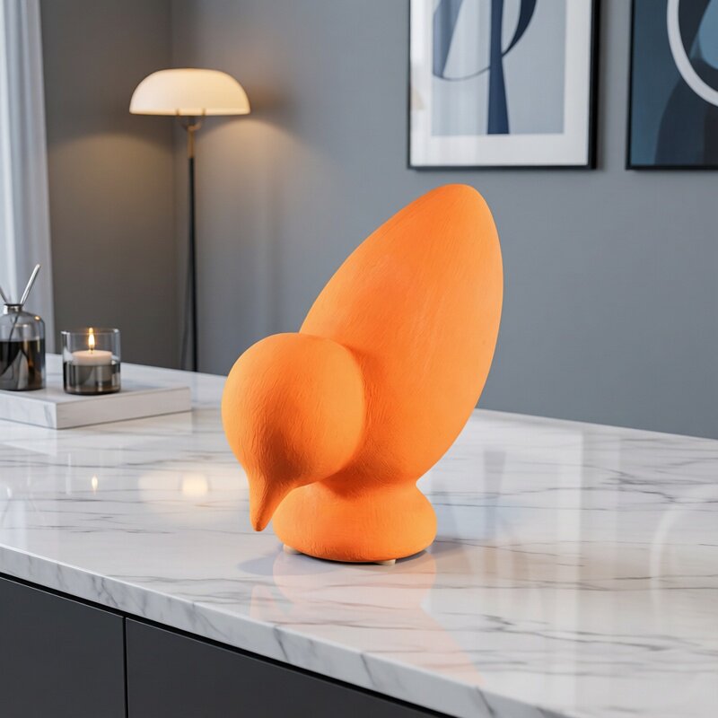 简约现代创意抽象北欧风格陶瓷哑光拉丝橙色小鸟动物摆件家居饰品