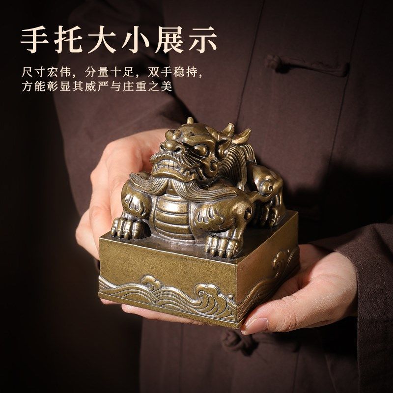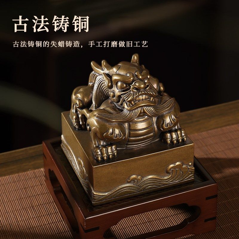 大尺寸玉玺做旧黄铜招财瑞兽名字印章定制桌面玄关办公室摆件装饰