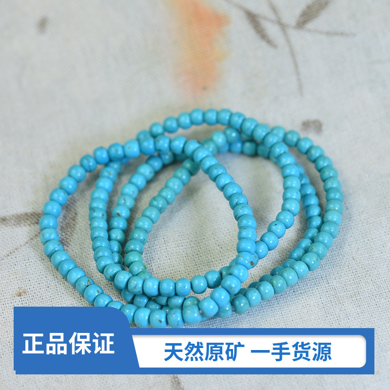 湖北天然原矿绿松石手串4-6mm老型圆珠手链女单圈无优化中式礼物