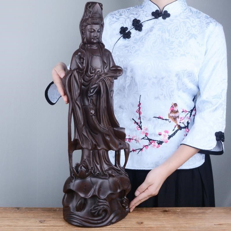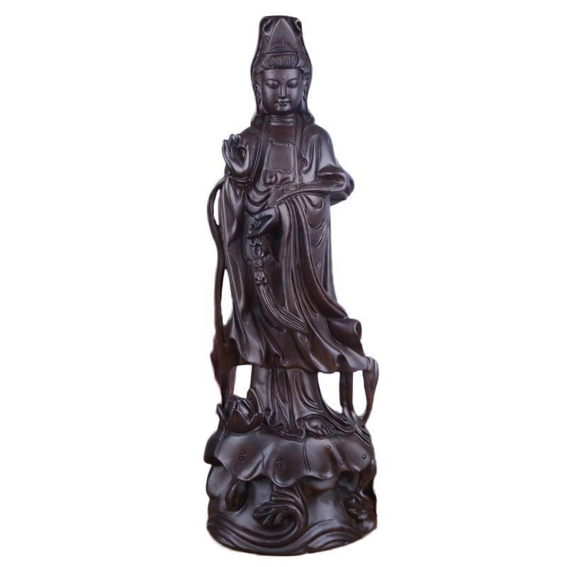 快速发货b黑檀木雕观音佛像摆件实木如意观音菩萨莲花供佛家居镇