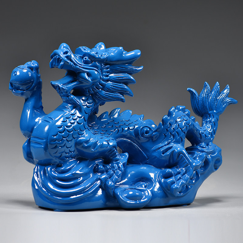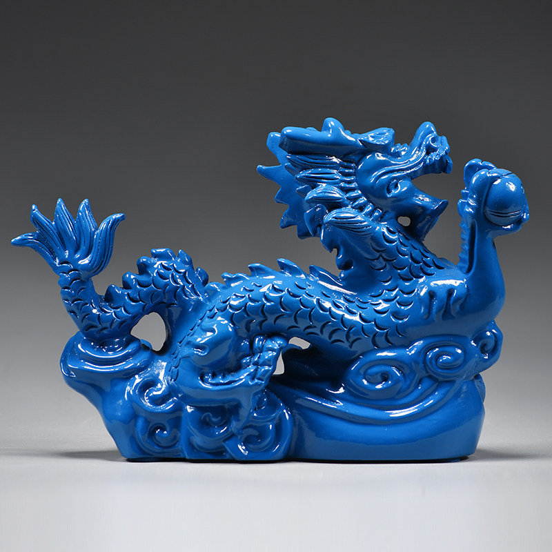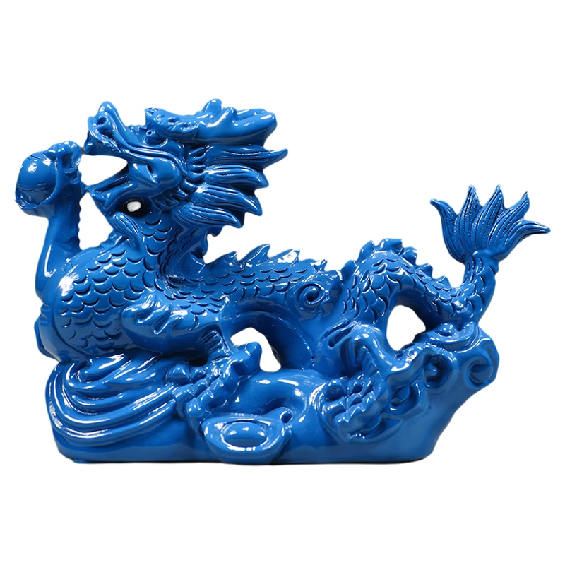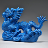 蓝色木龙摆件补角木质雕刻十二生肖实木飞龙吉祥物木头装饰工艺品