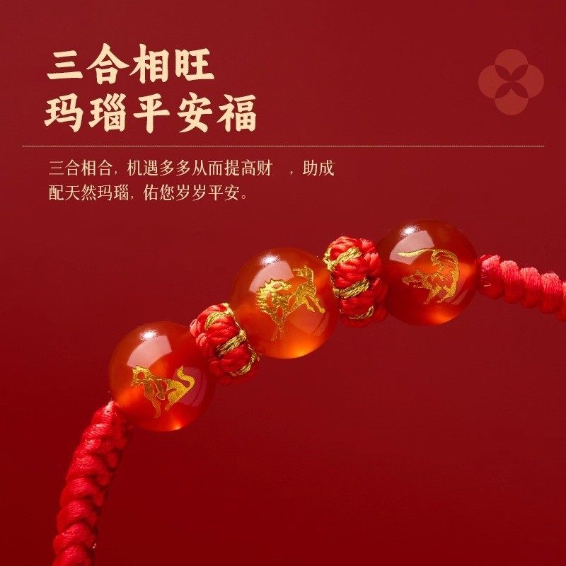 五台山2026丙午马年三合生肖红绳手链女本命年转运编织手绳男礼物