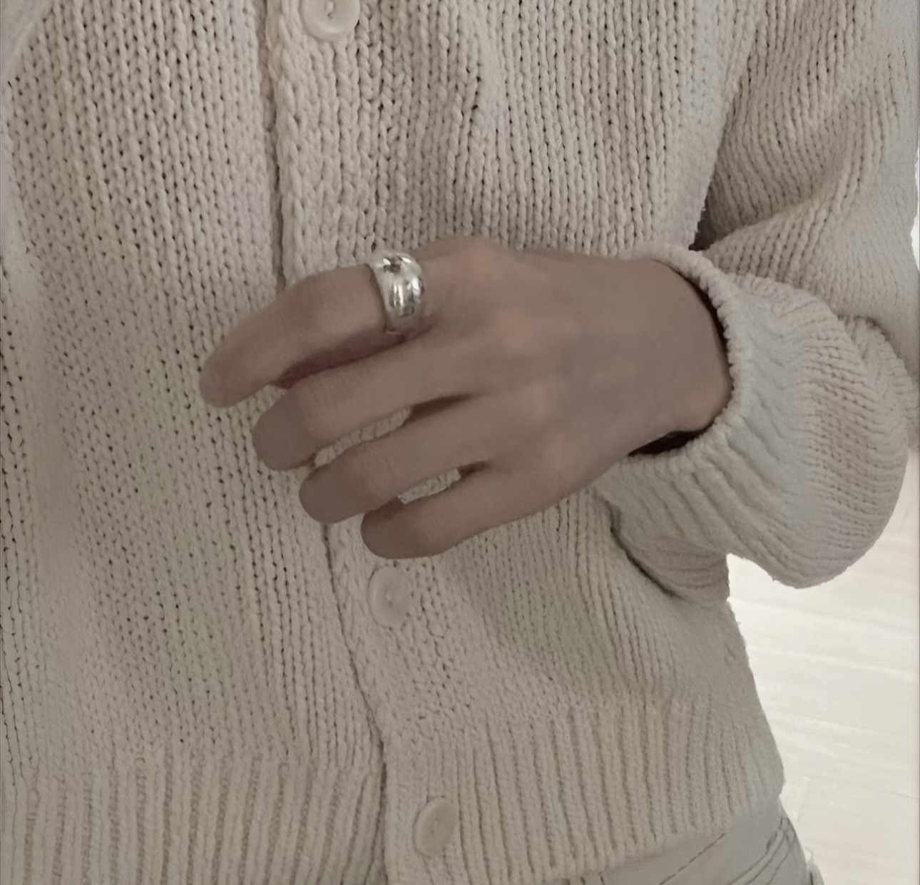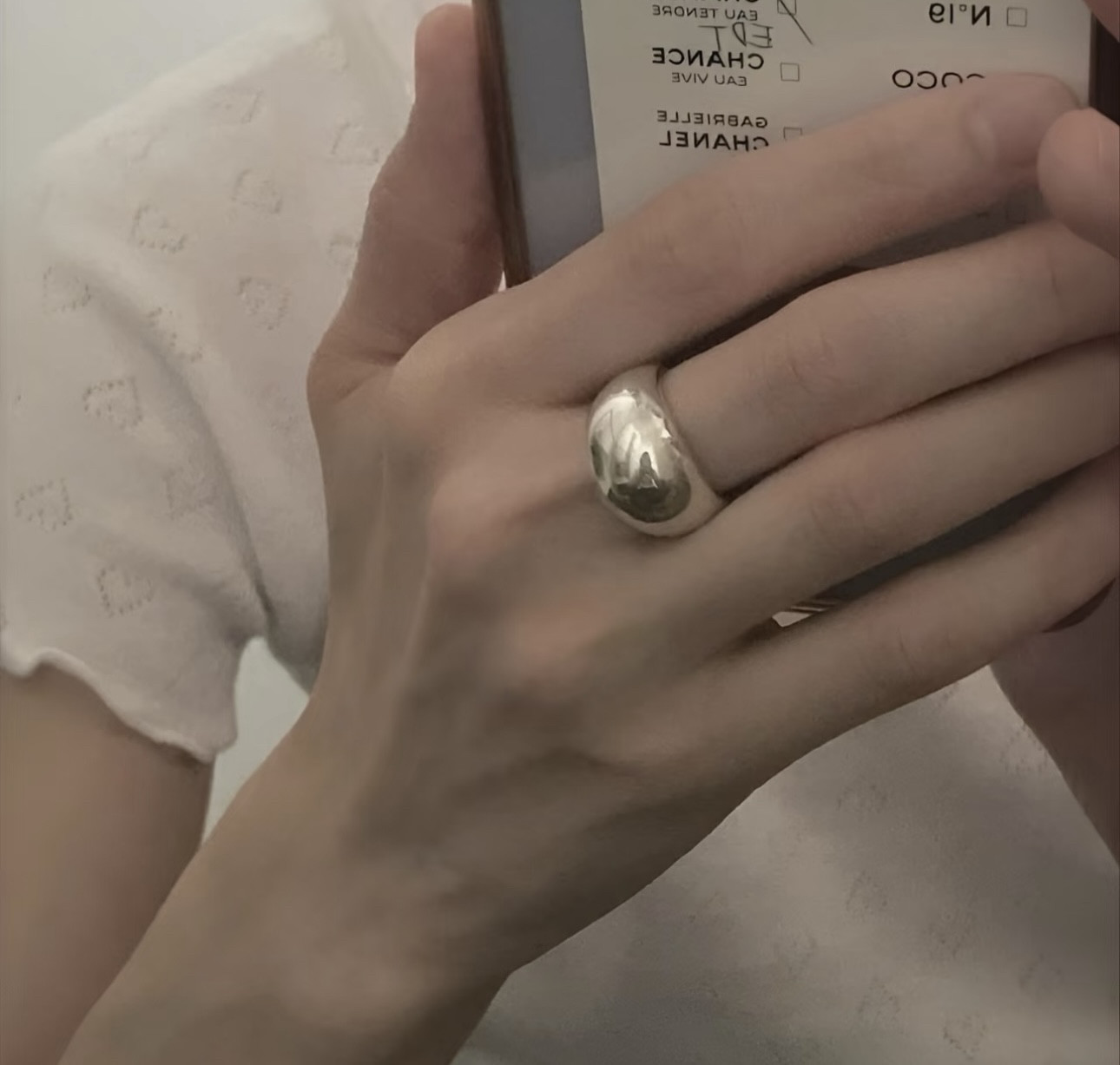 银色光面戒指女纯银亮银色椭圆重工开口指环面包戒指