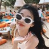 复古椭圆黑框墨镜2023新款潮女小红书ins韩版白色太阳眼镜网红款