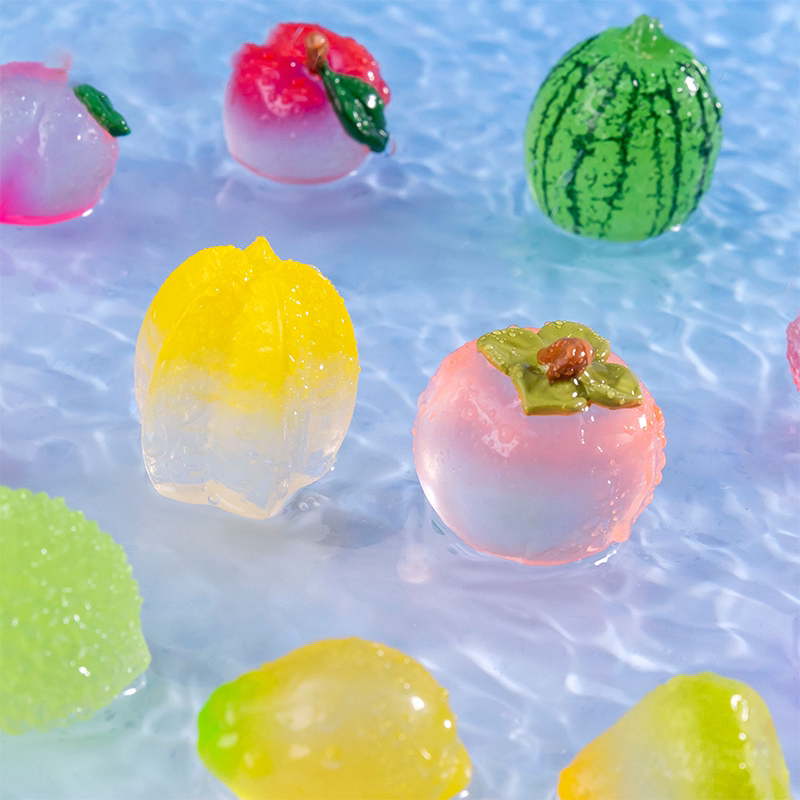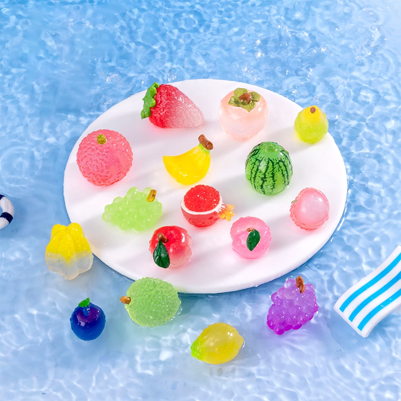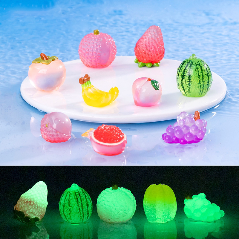 迷你夜光水果食玩柿子芒果草莓桃子荔枝西瓜榴莲杨桃香蕉仿真模型