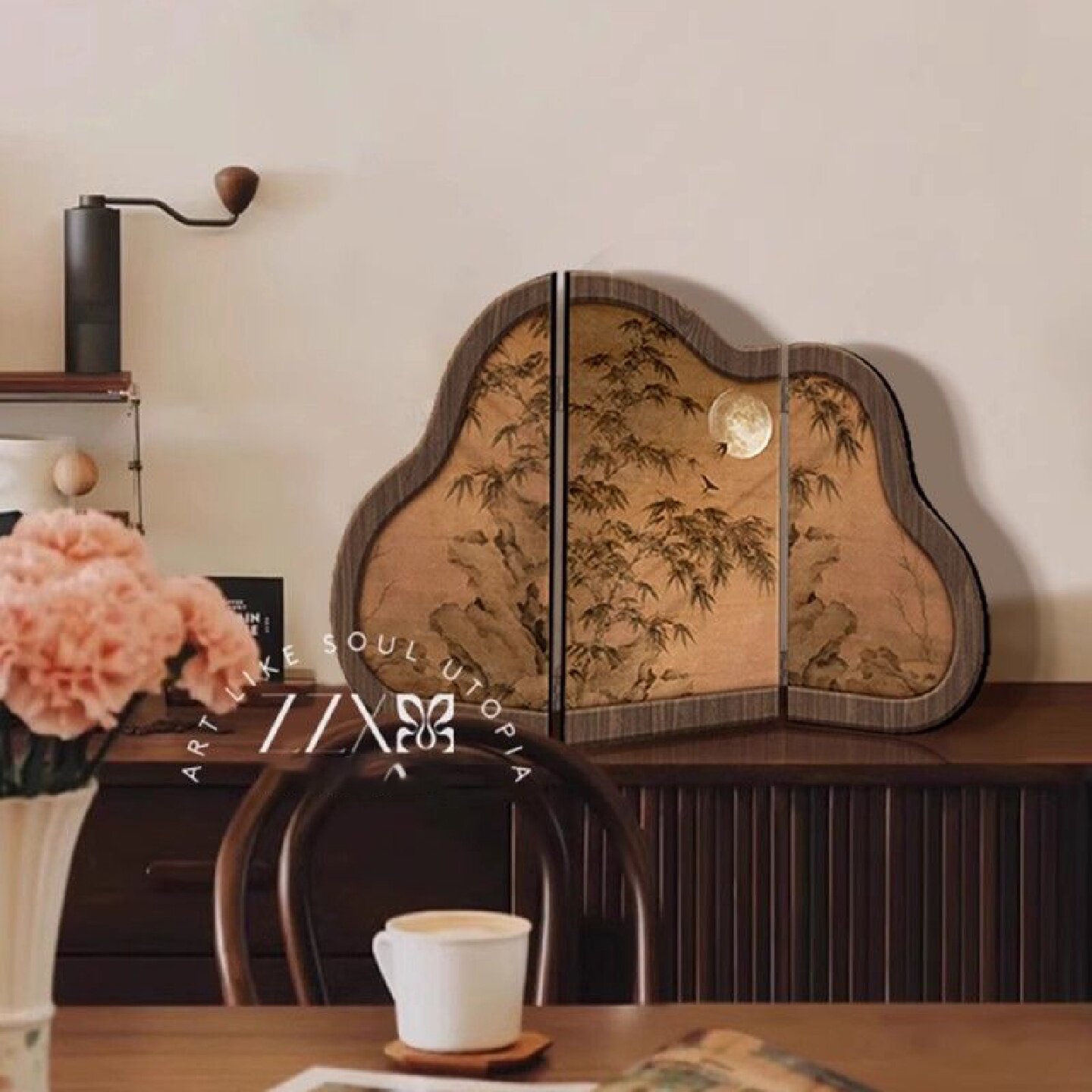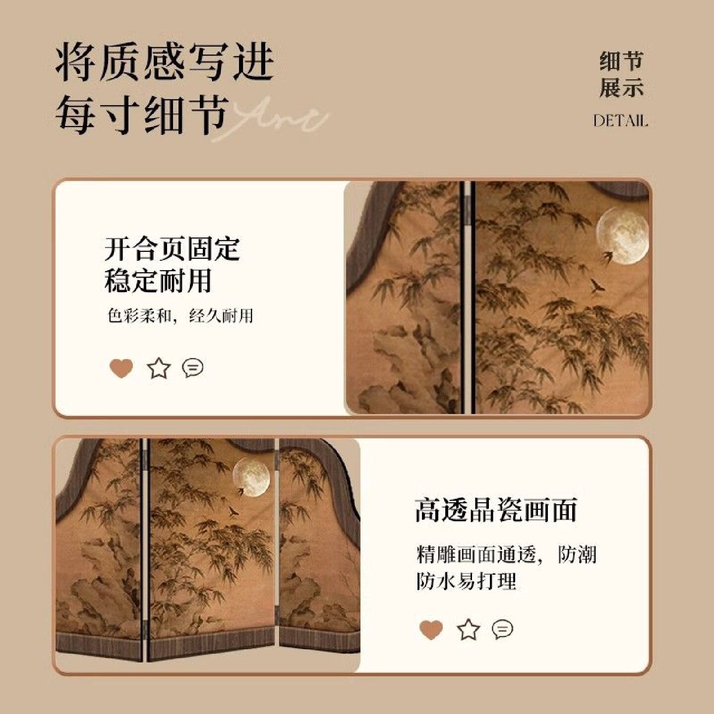 中古风墨竹图桌面屏风摆件新中式客厅茶桌入户玄关边柜装饰品摆画