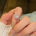 铜镀银戒指女轻奢高级感仿白玉髓鸽子蛋戒指新中式尾戒女小指指环