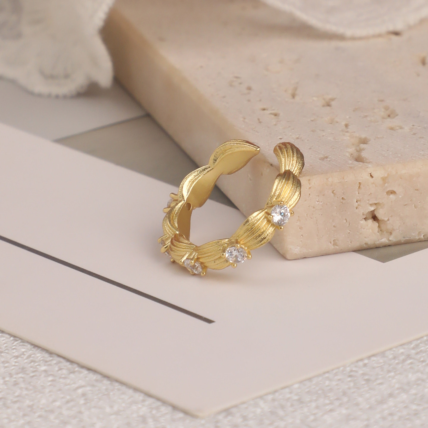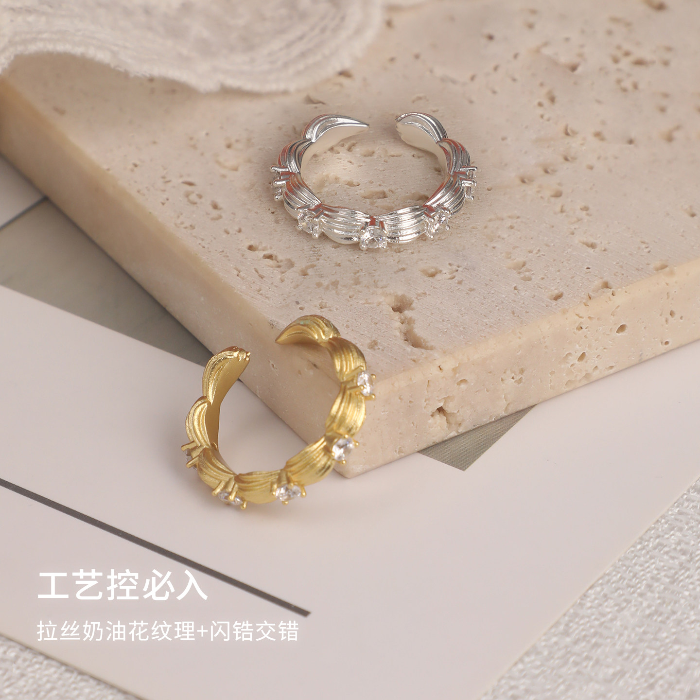 戚砚笛同款abyb奶油拉花法式老钱风简约百搭可调节开口戒指礼物