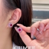 时尚花朵形围边设计师款戒指耳钉吊坠套装鸽血红色.银镀金
