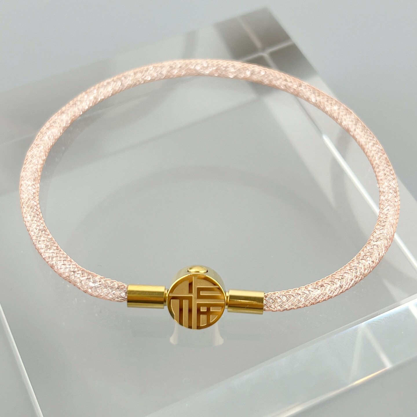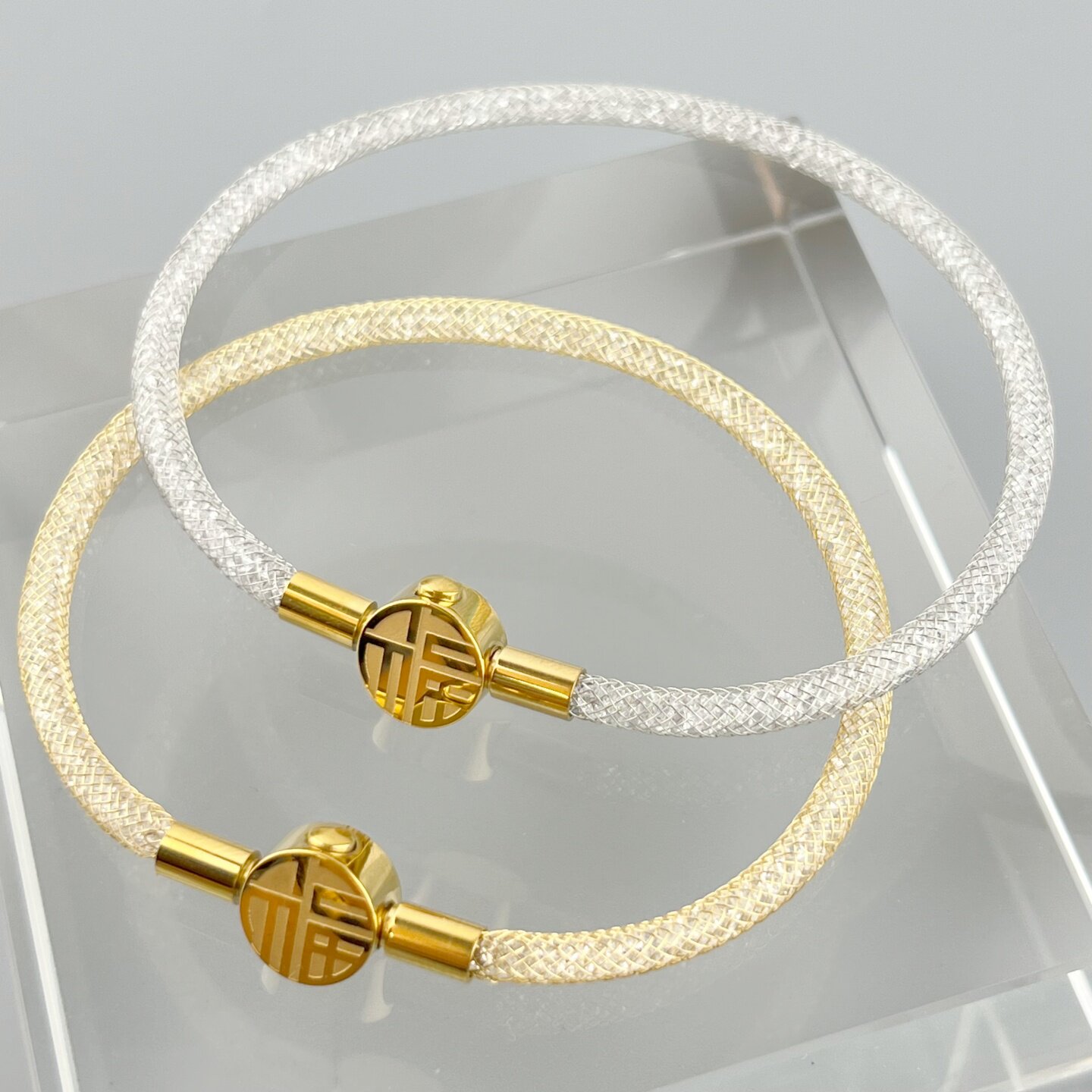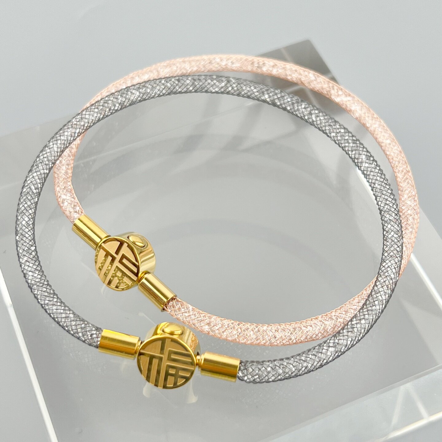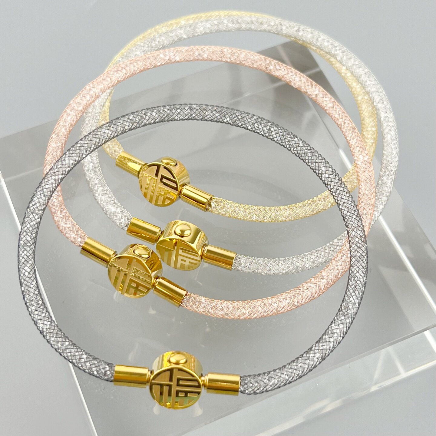 原创设计钢丝网手链女超闪水晶颗粒装饰高级感百搭福字钛钢扣手绳