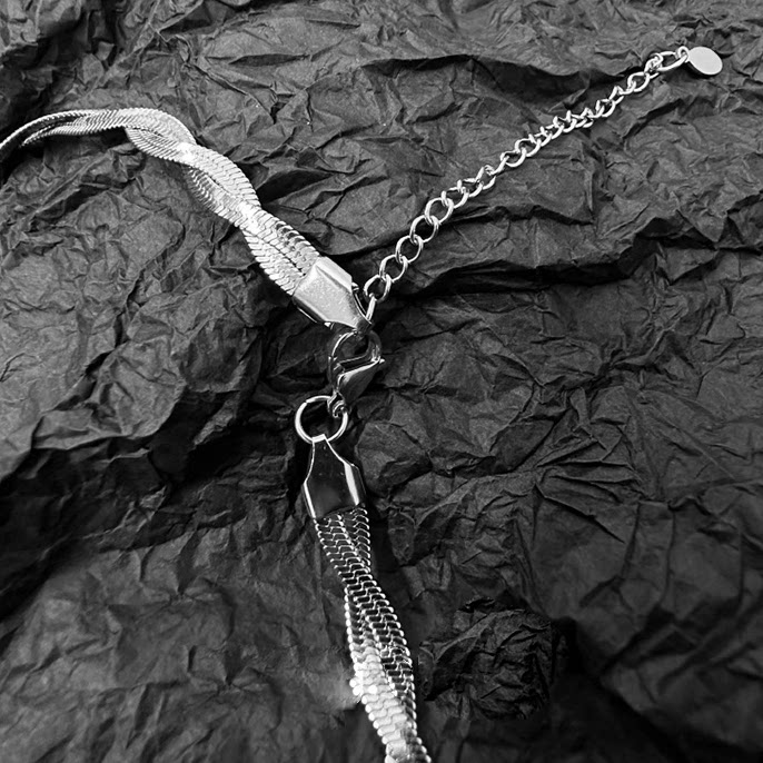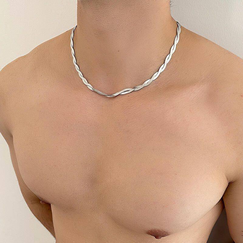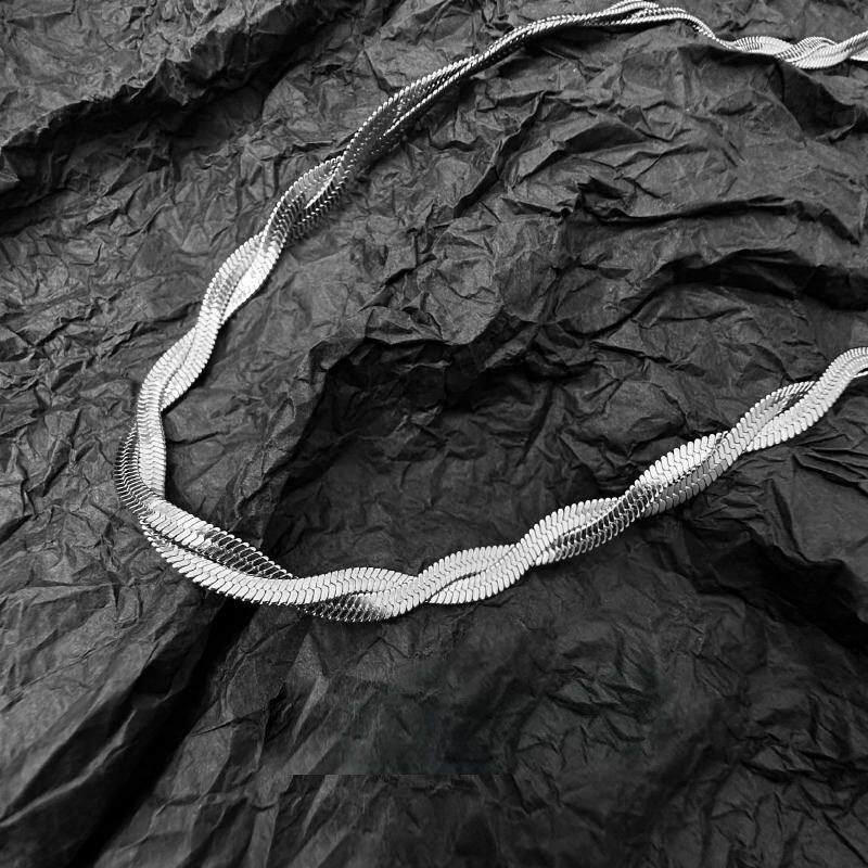 双层缠绕刀片蛇骨链男生冷淡风扁项链女钛钢小众高级感锁骨链潮