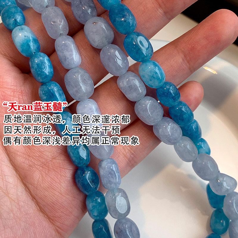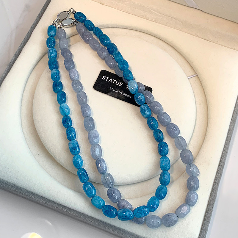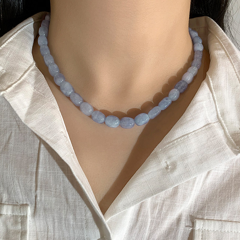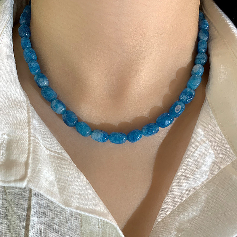 2026新款蓝色玉髓项链女天然石串珠小众新中式显白玛瑙复古锁骨链