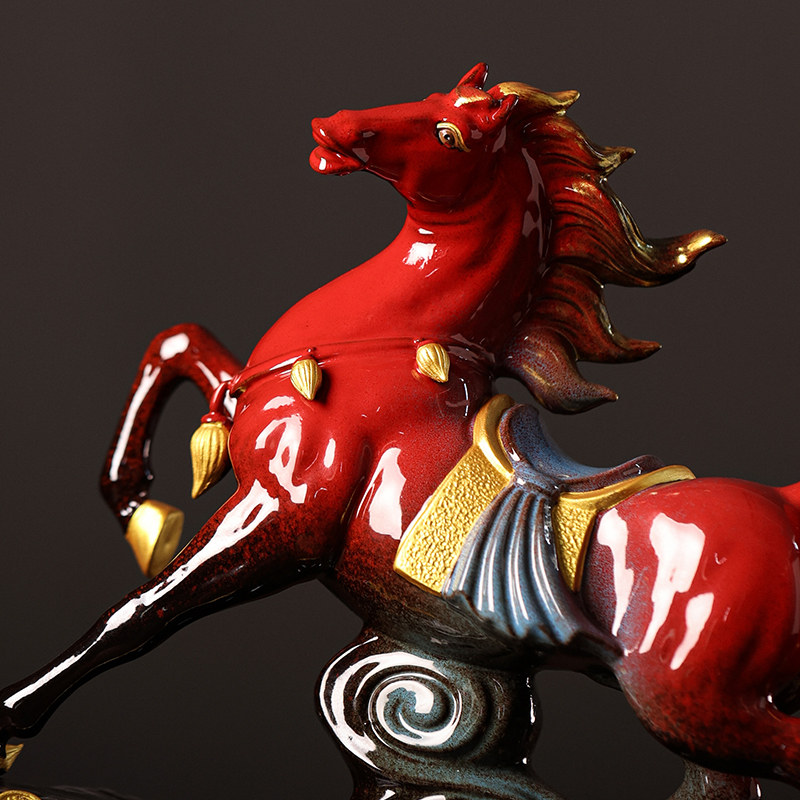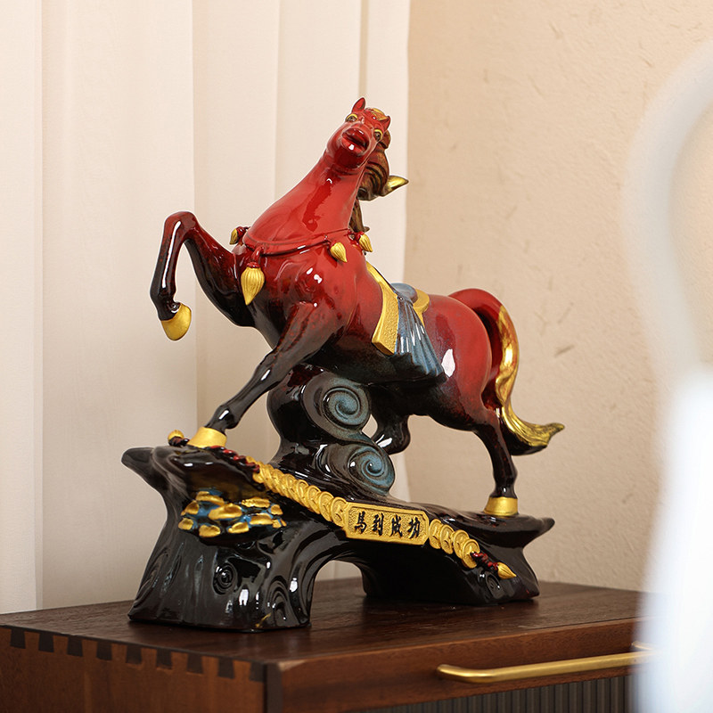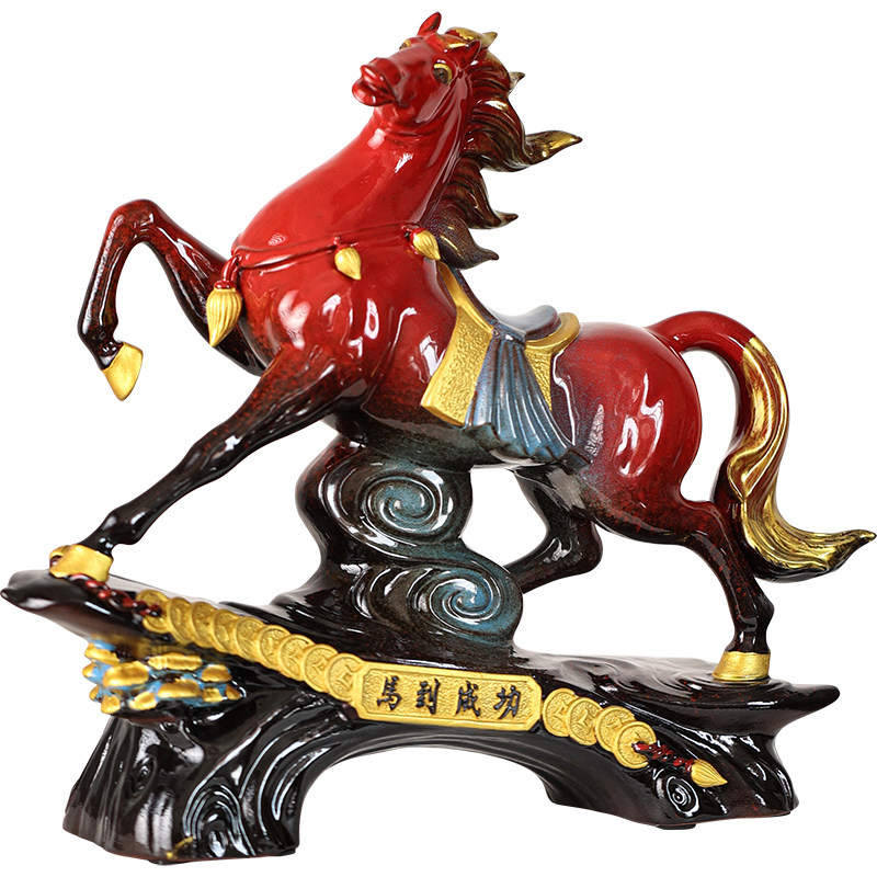 马摆件红色陶瓷马到成功生肖马客厅酒柜办公室桌面工艺品开业礼品
