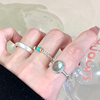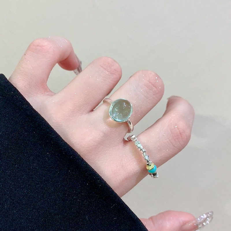 海蓝宝石戒指女小众设计高级感碎银子食指环素圈戒指时尚个性尾戒