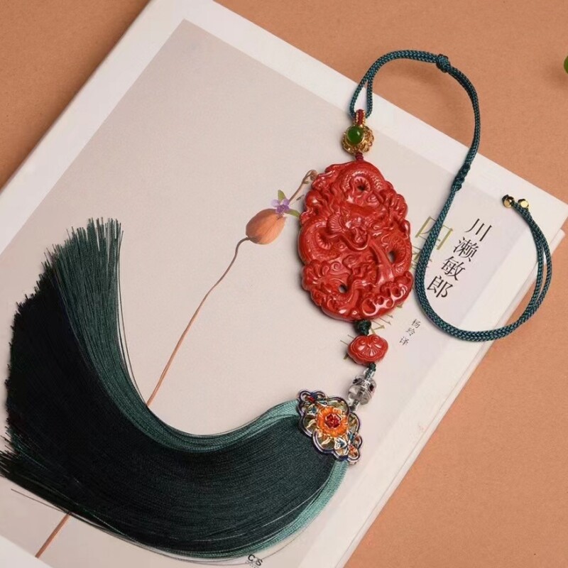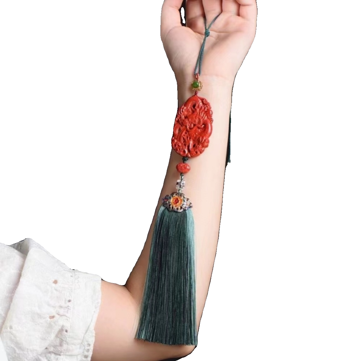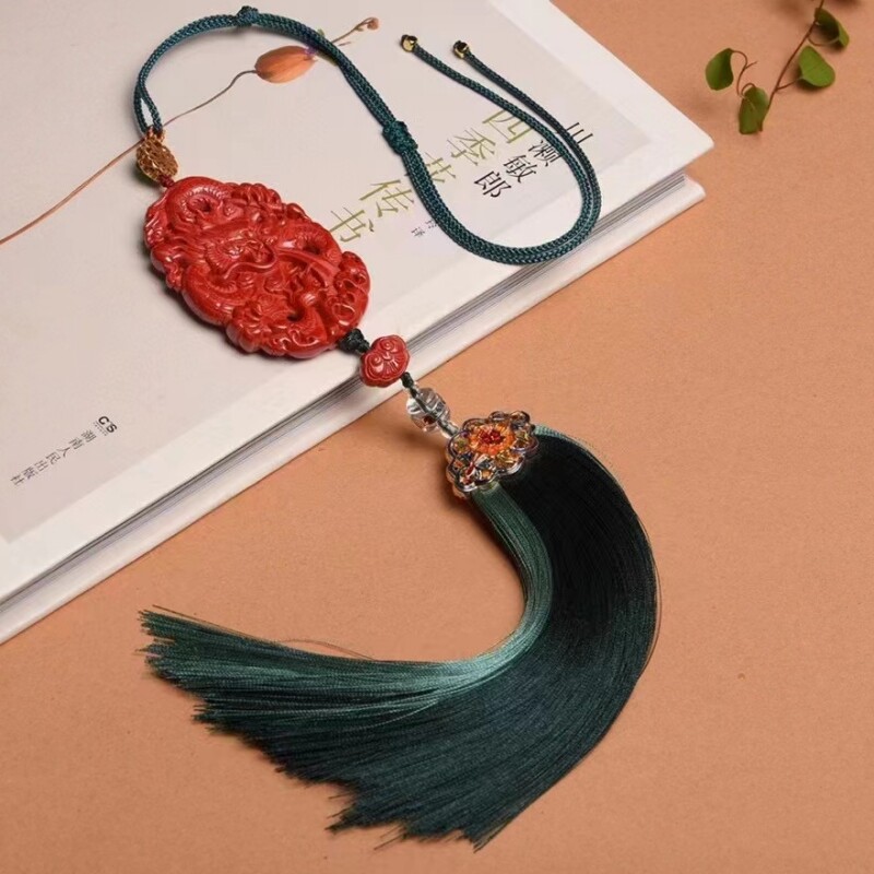 红朱砂汽车挂件龙牌高档平安车挂车载后视镜双龙护主车用吊坠