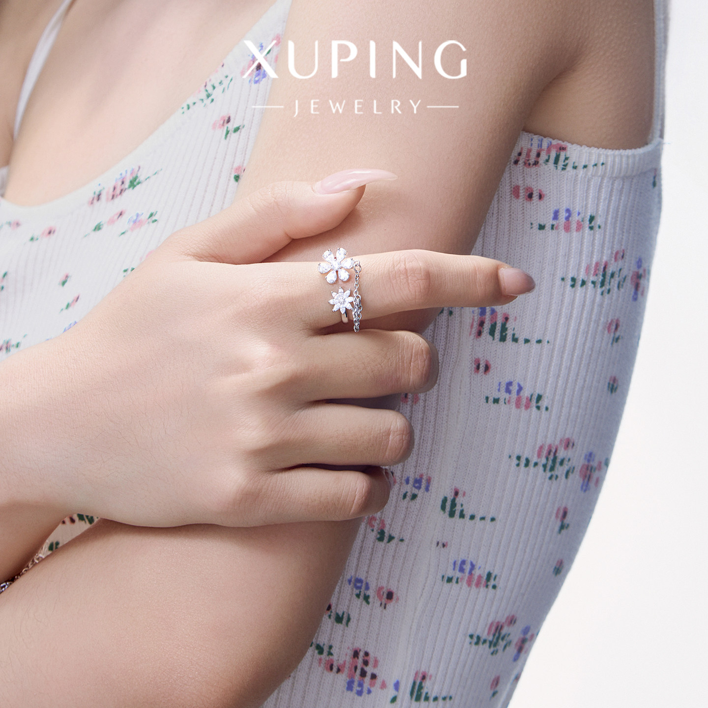 旭平甜美精致白色花朵戒指女轻奢小众高级设计感时尚流苏闪烁指环