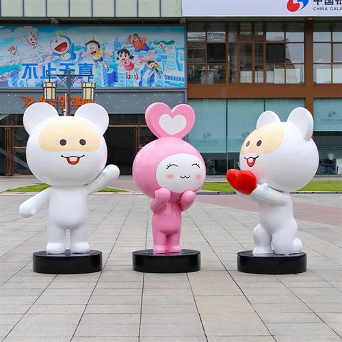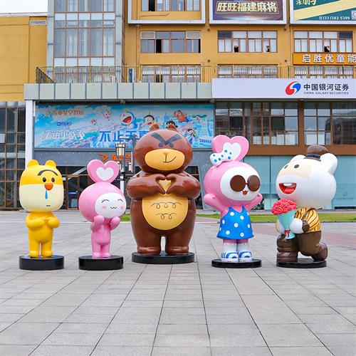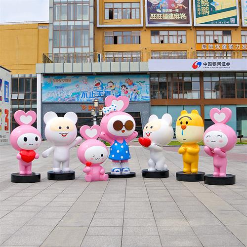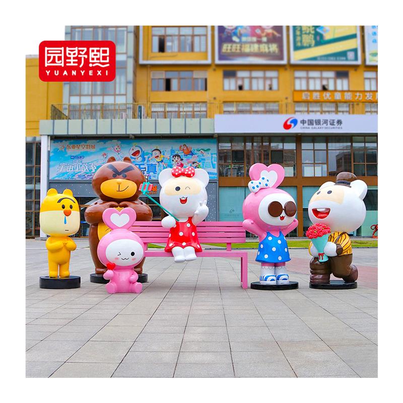 卡通公仔心心兔商场奶茶店美陈装饰网红雕塑玻璃钢布朗熊公园摆件