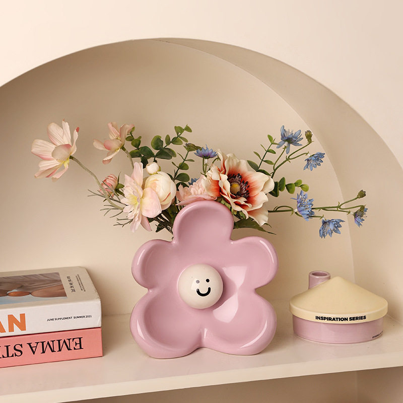 高颜值可爱花朵摆件ins小众陶瓷花瓶卧室客厅茶几桌面收纳装饰品