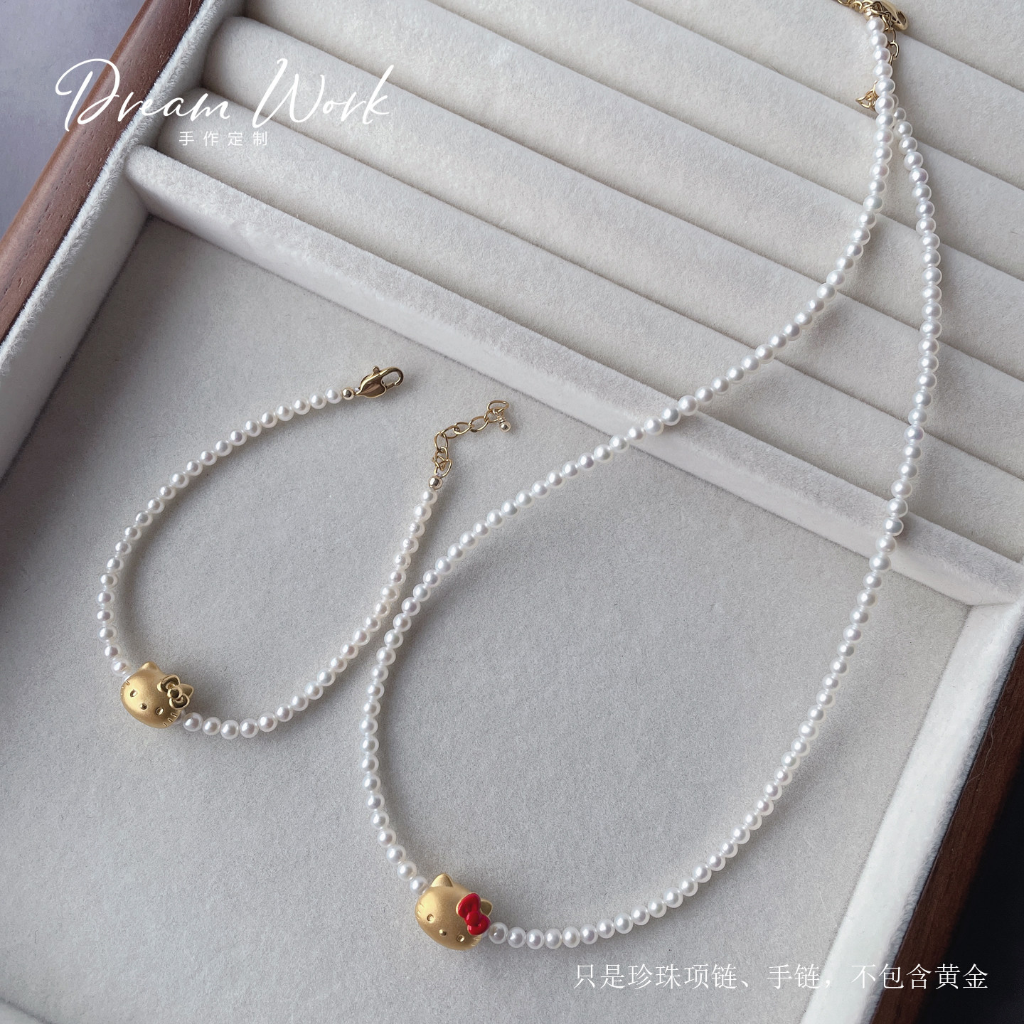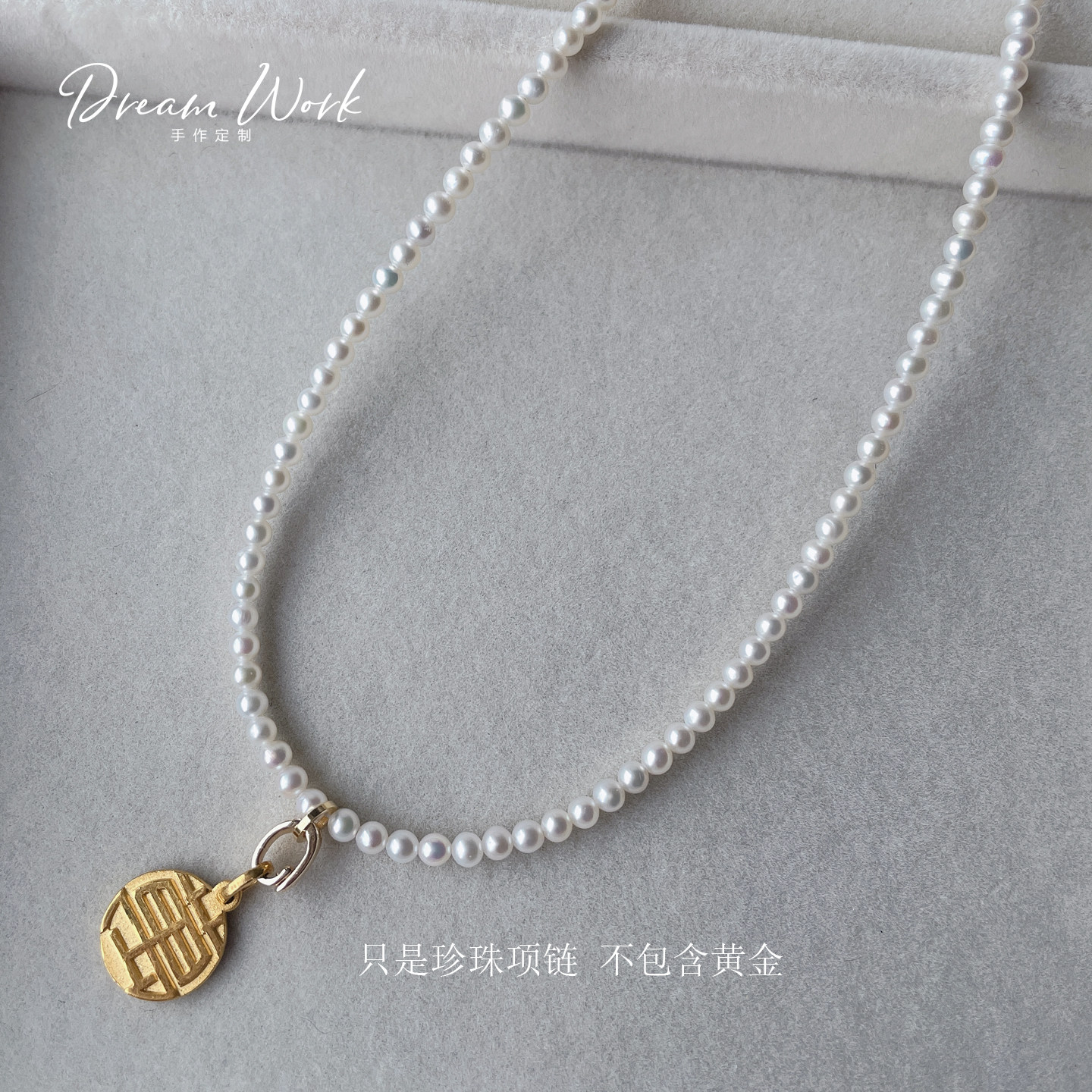 Dream Work穿金珠挂吊坠珍珠项链手链 迷你淡水天然珍珠项链颈链