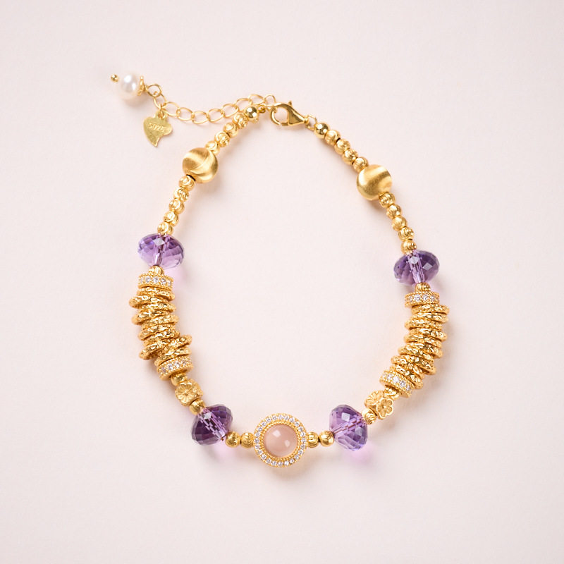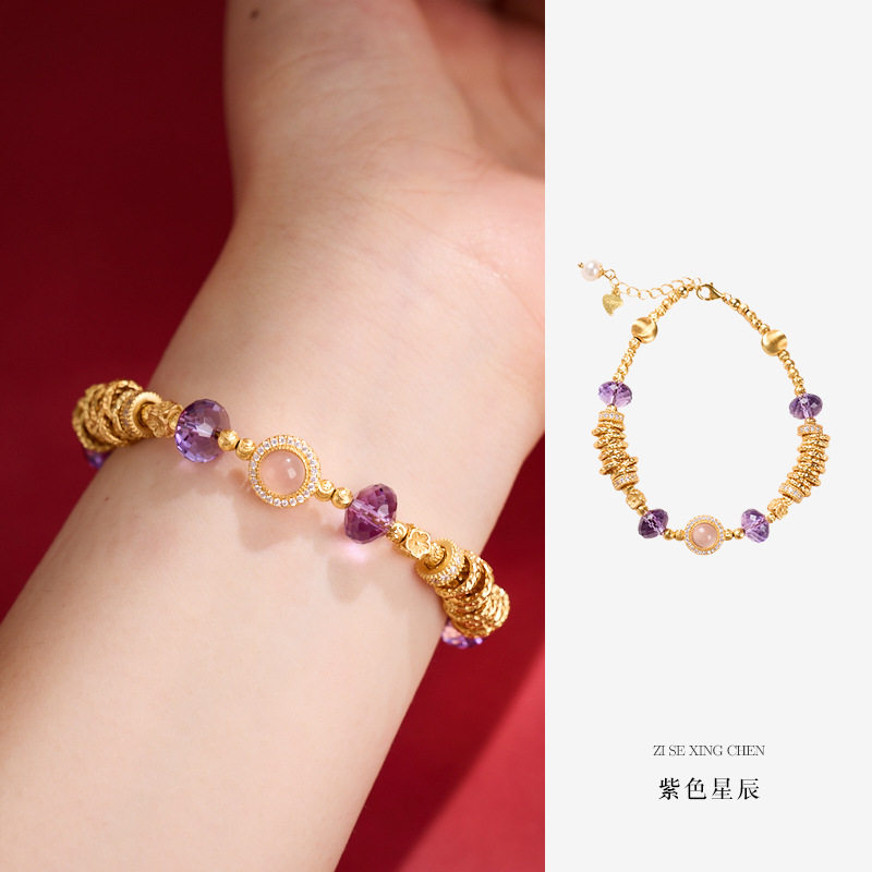 源头工厂批发紫色星辰S925银盘缠水晶手链女百搭送女友闺蜜礼物