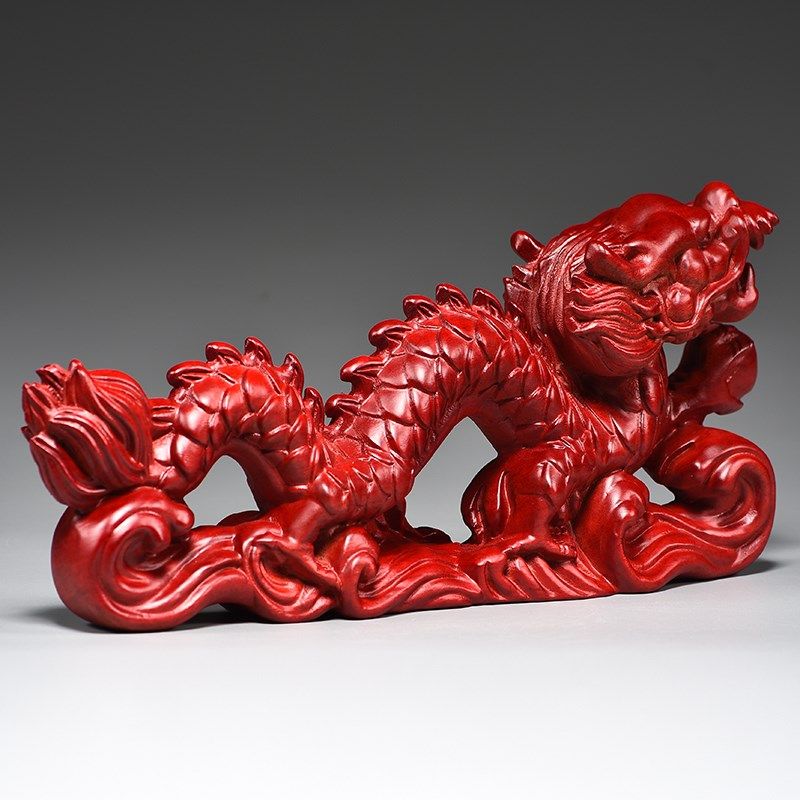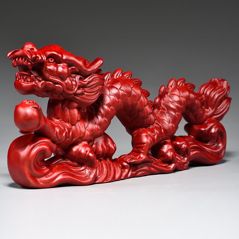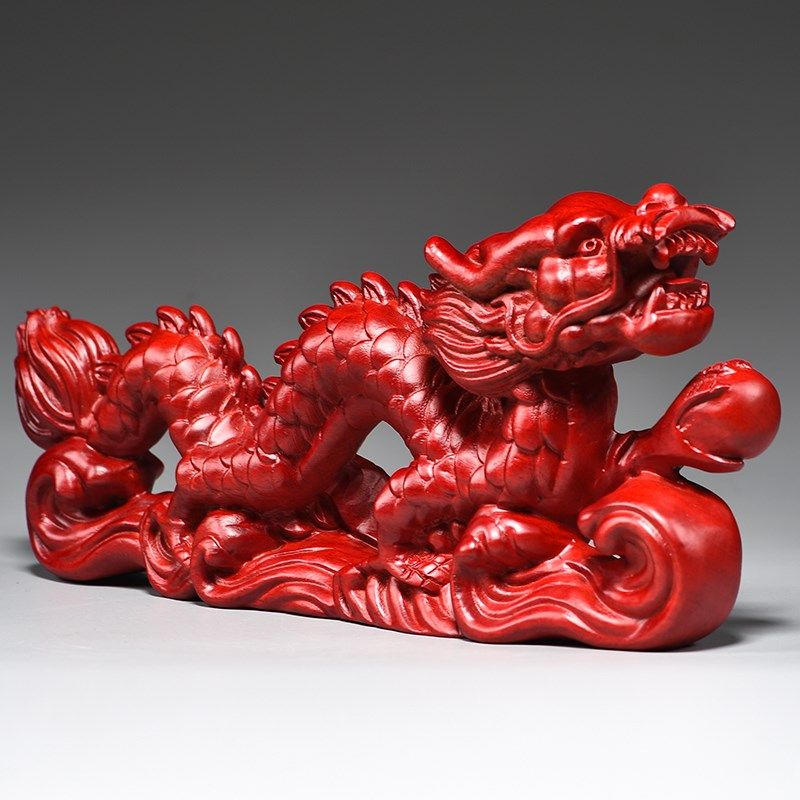 红色木质雕刻龙十二生肖龙形工艺品客厅补角装饰摆设业送礼