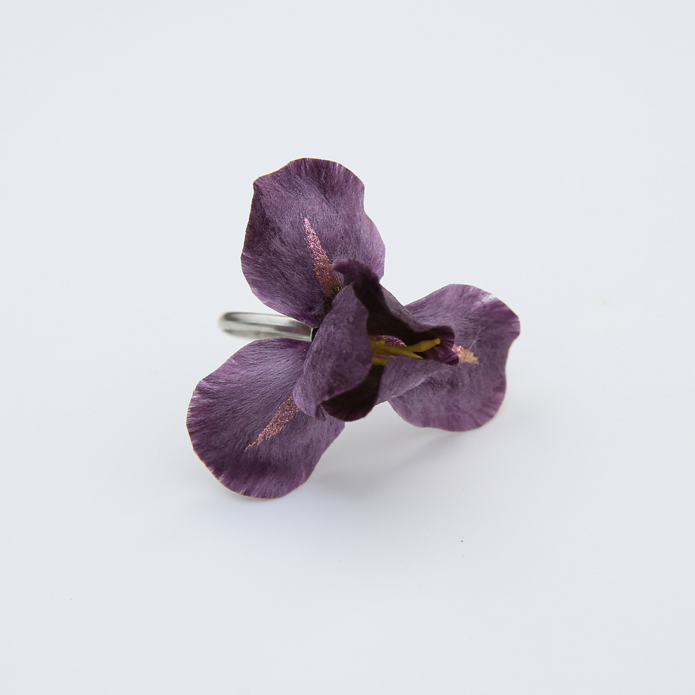 江南拾花 非遗手工紫色鸢尾绒花戒指时尚简约优雅女士指环可调节