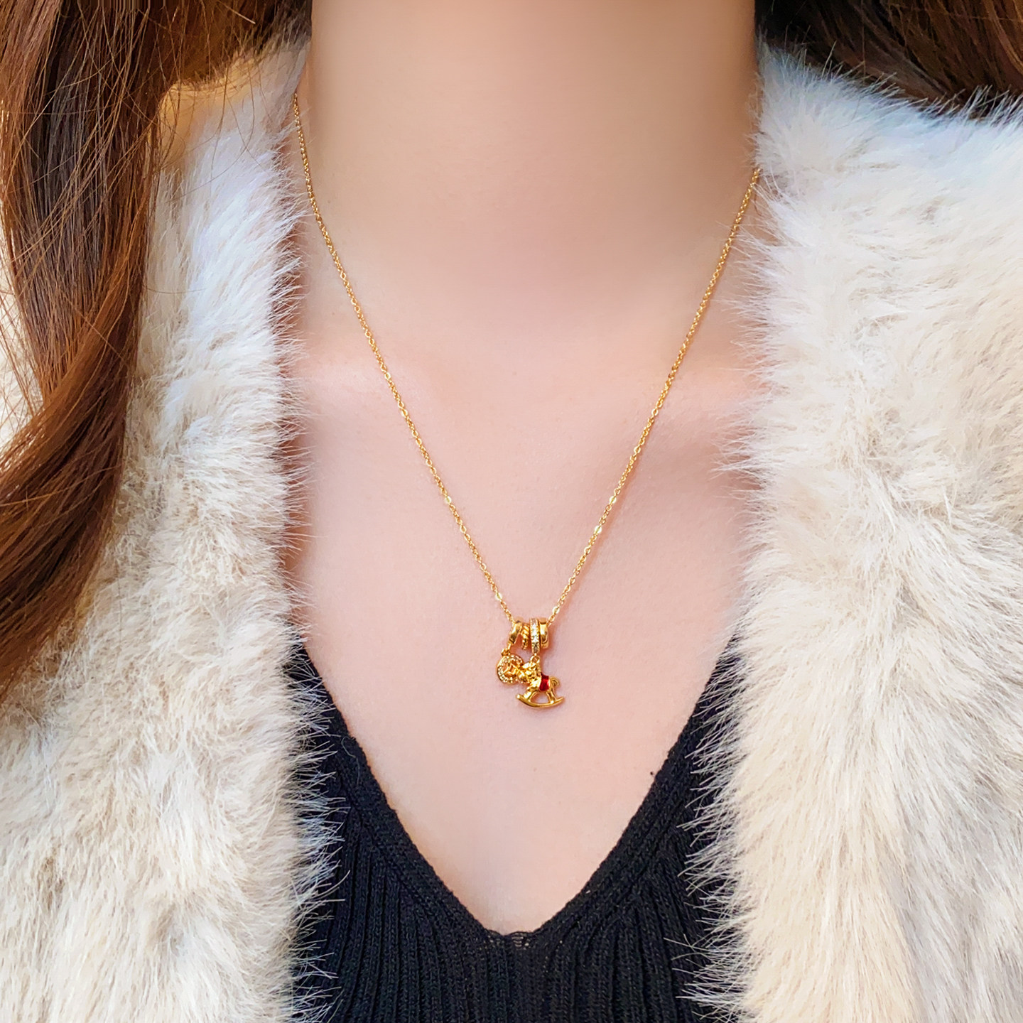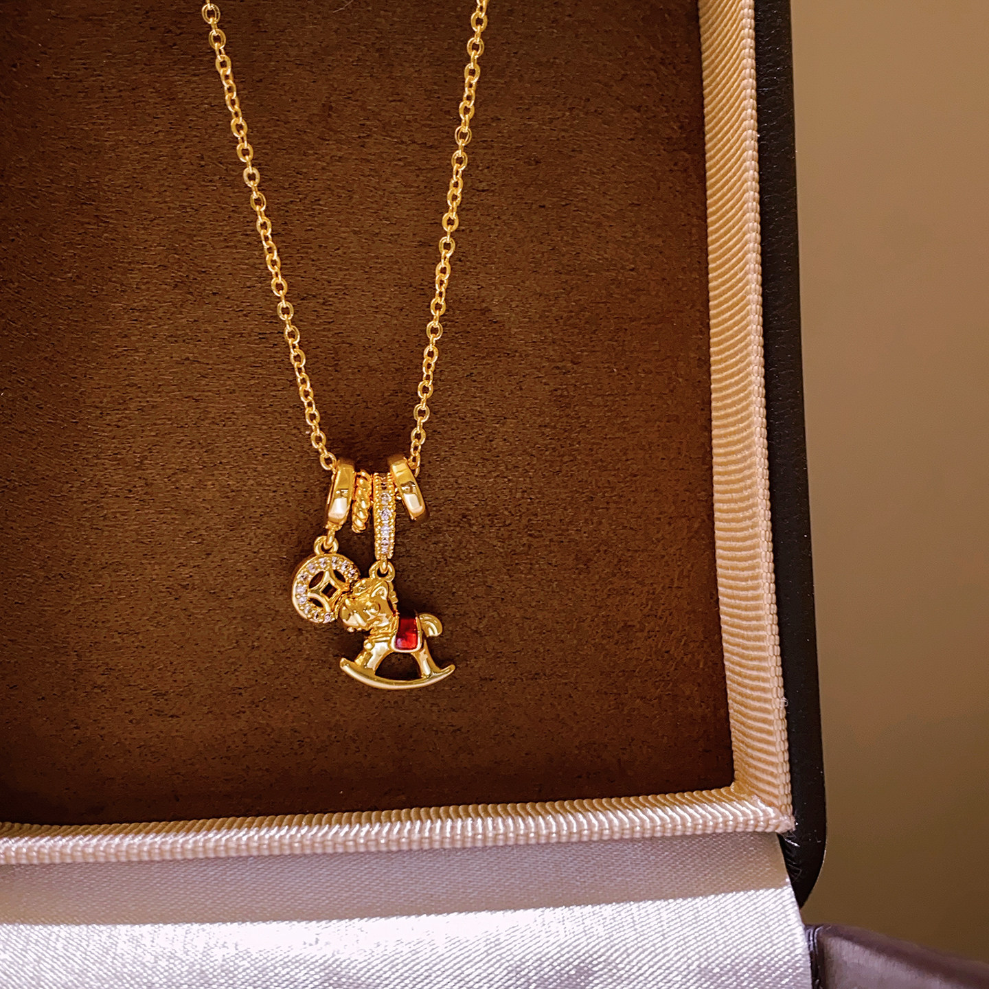 沙金小马钱币吊坠项链女2026新款毛衣链大气高档高级感秋冬配饰品