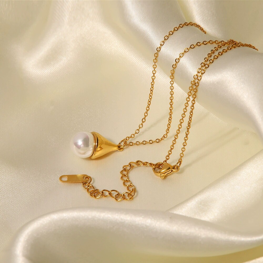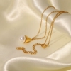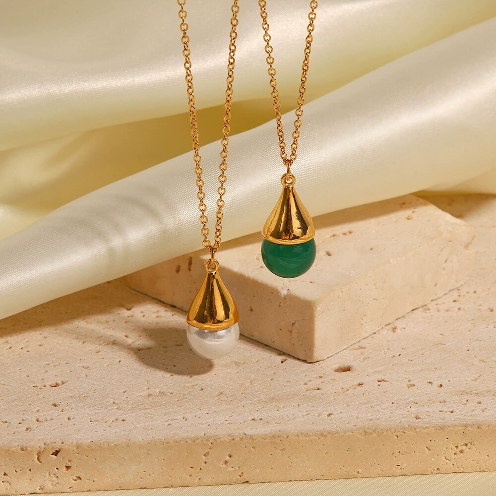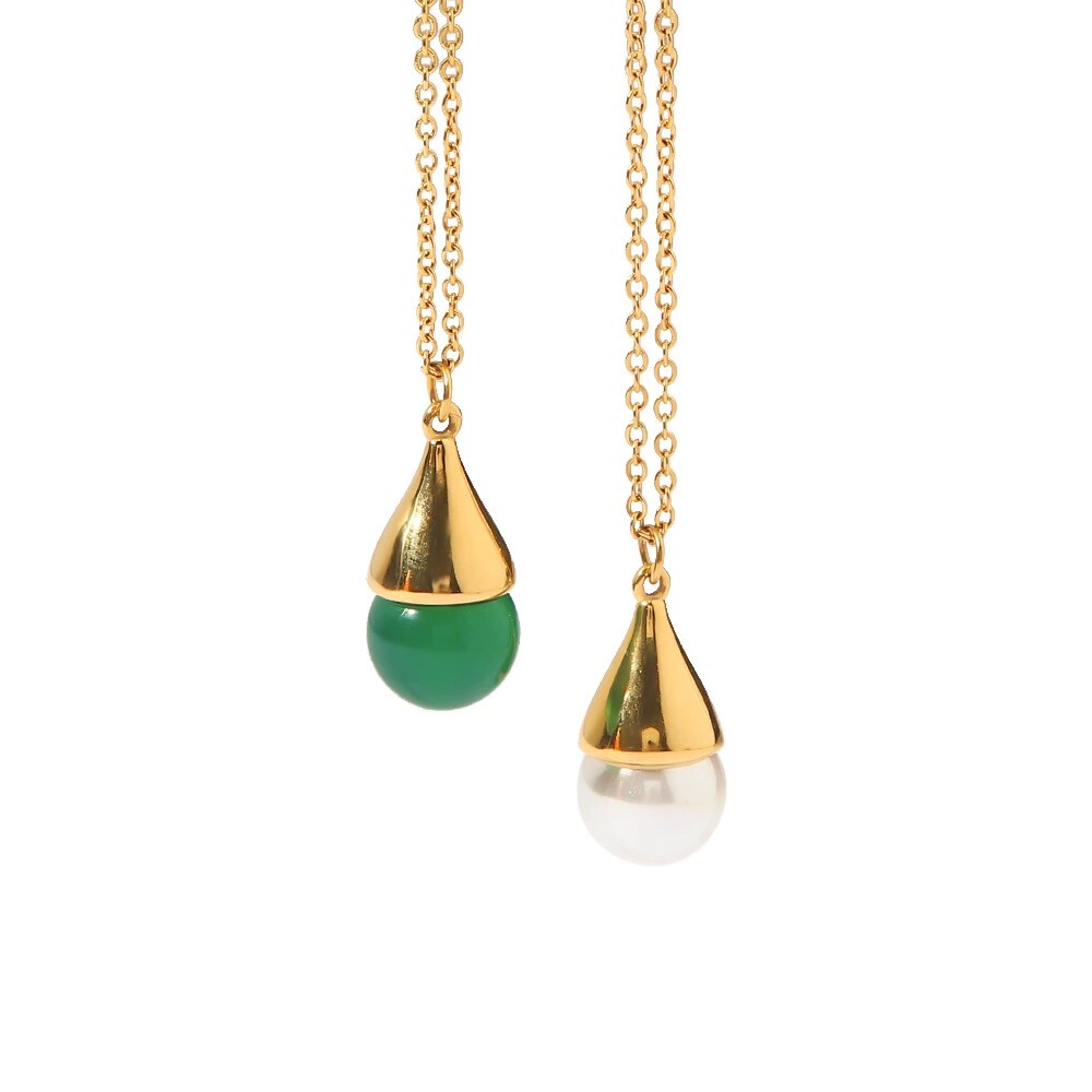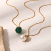 ins金色水滴项链不掉色钛钢新复古风几何镶嵌绿色天然石吊坠项链