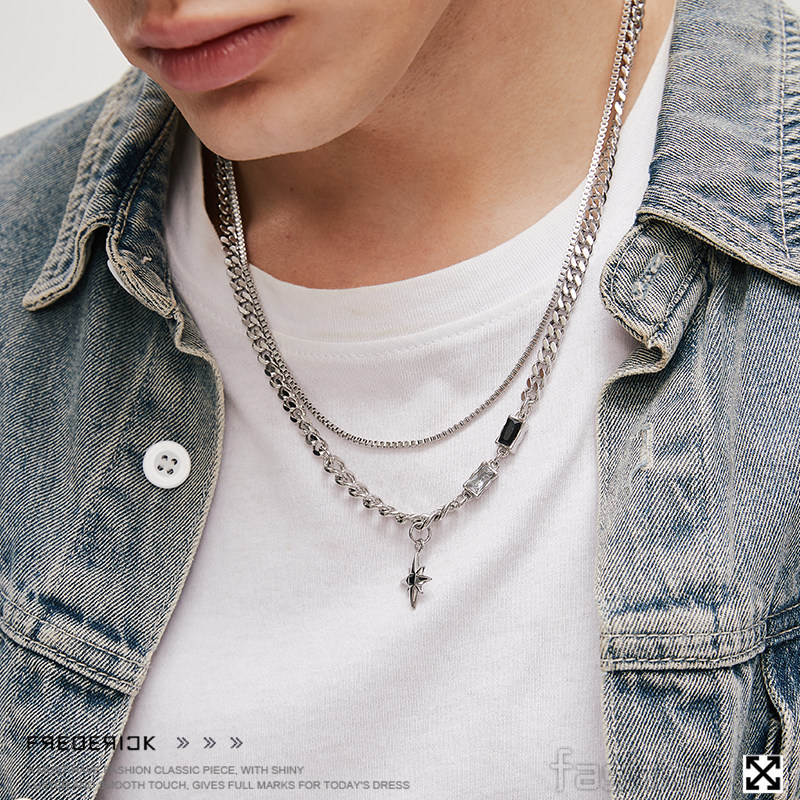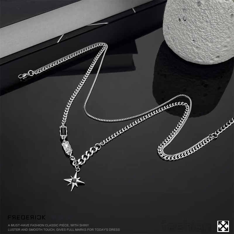 FDK项链男款六芒星吊坠项链男士双层叠戴毛衣链小众设计刻字送礼