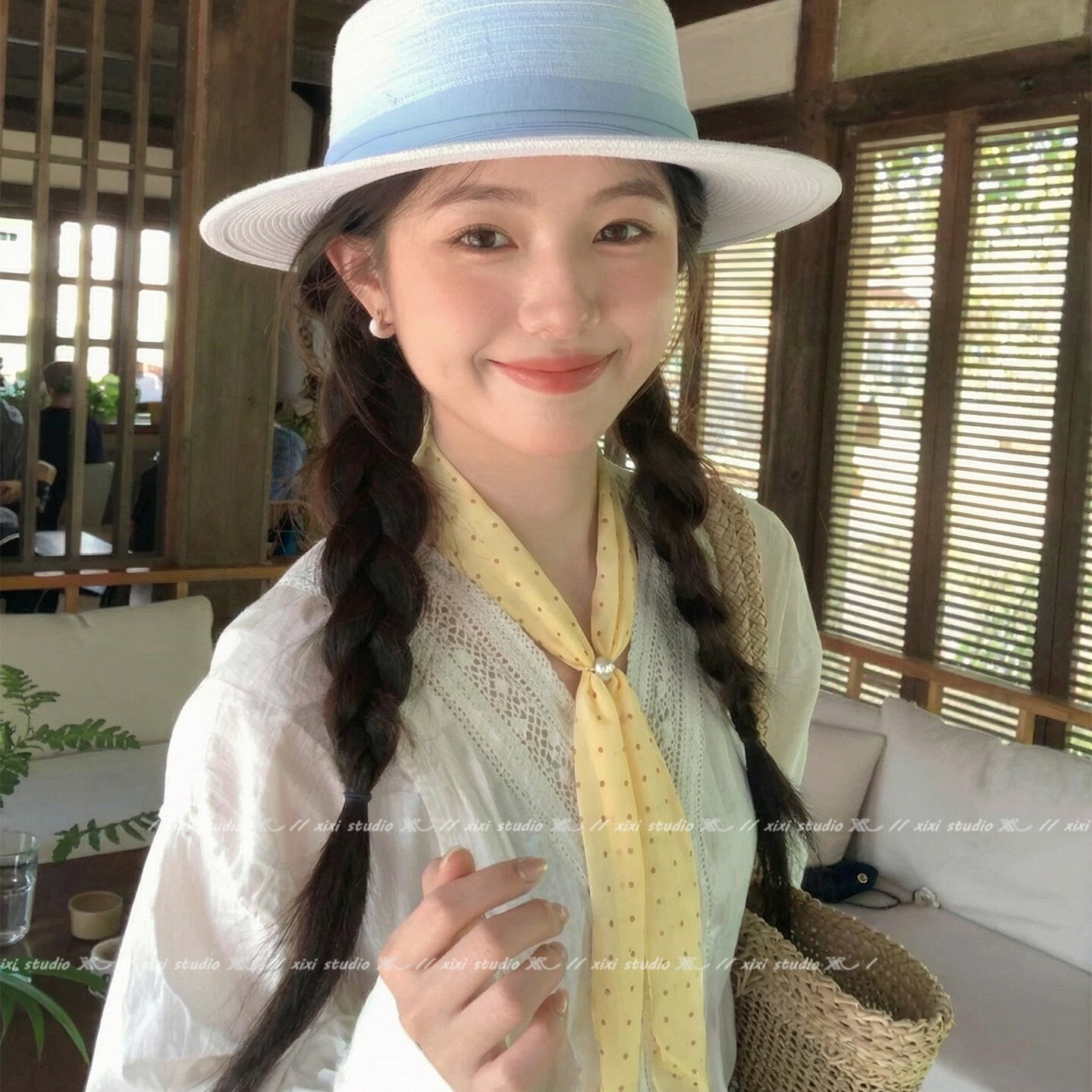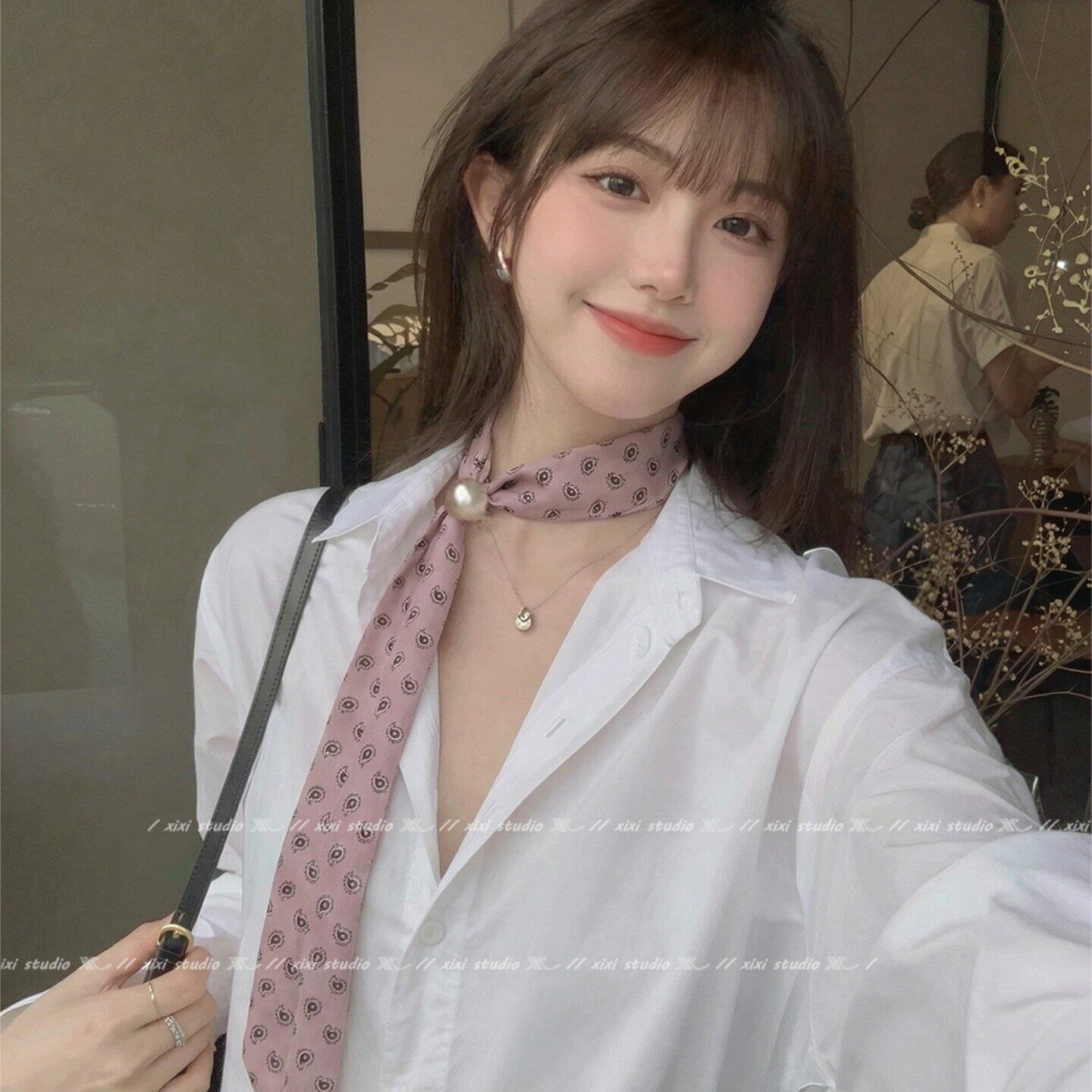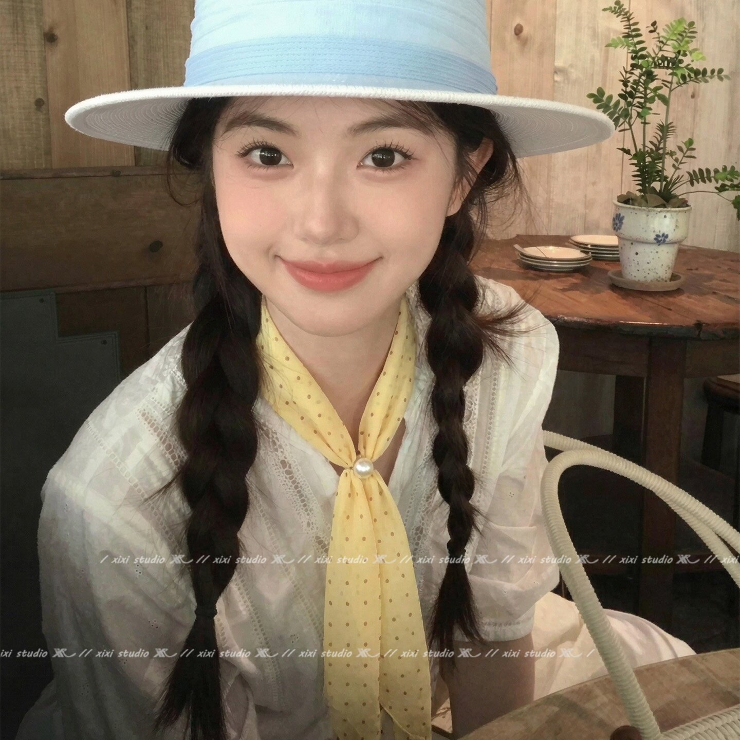 少女感黄色波点珍珠丝巾项链温柔风气质百搭颈饰设计感颈带新品女