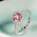 彩色宝石粉钻戒指女 莫桑圆形微镶纯银镀铂金结婚戒1克拉仿真钻戒