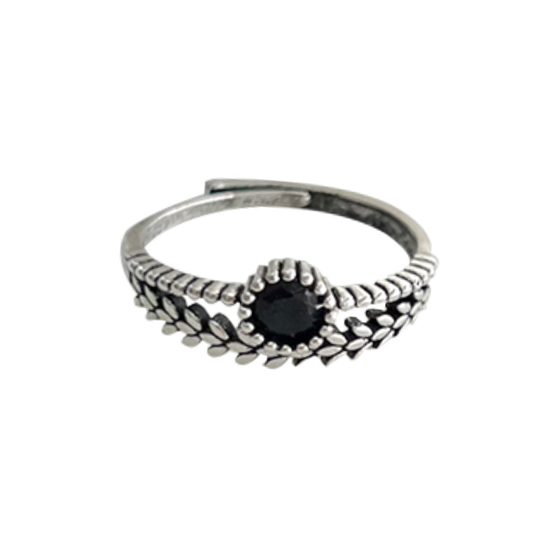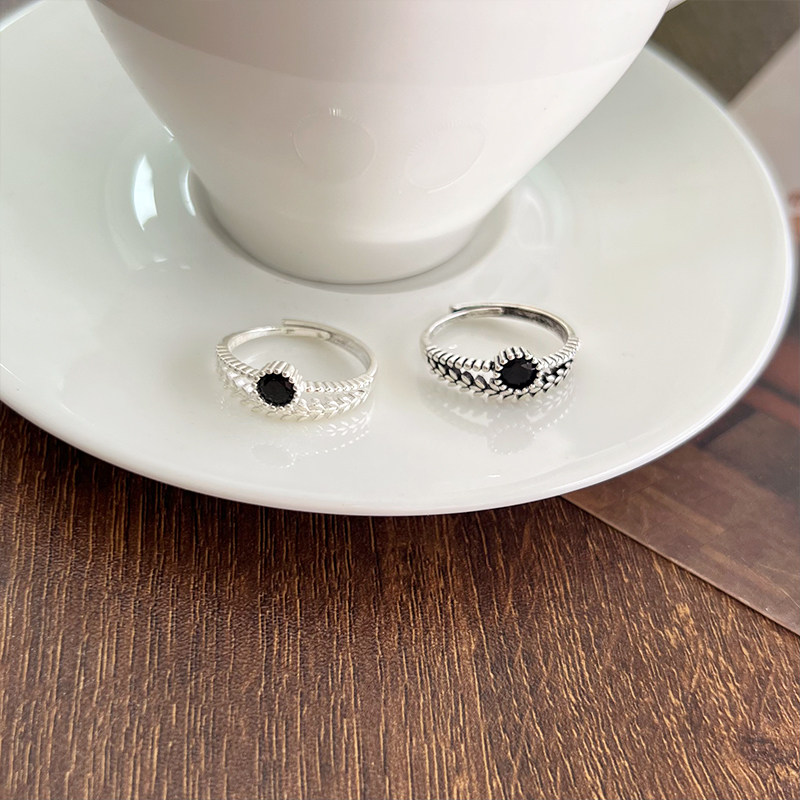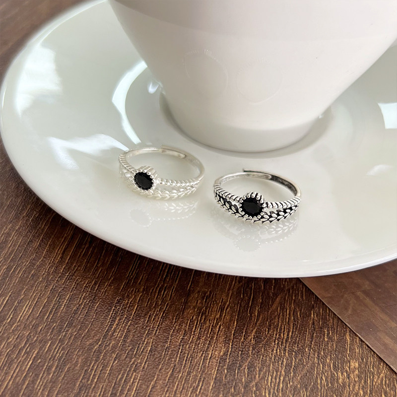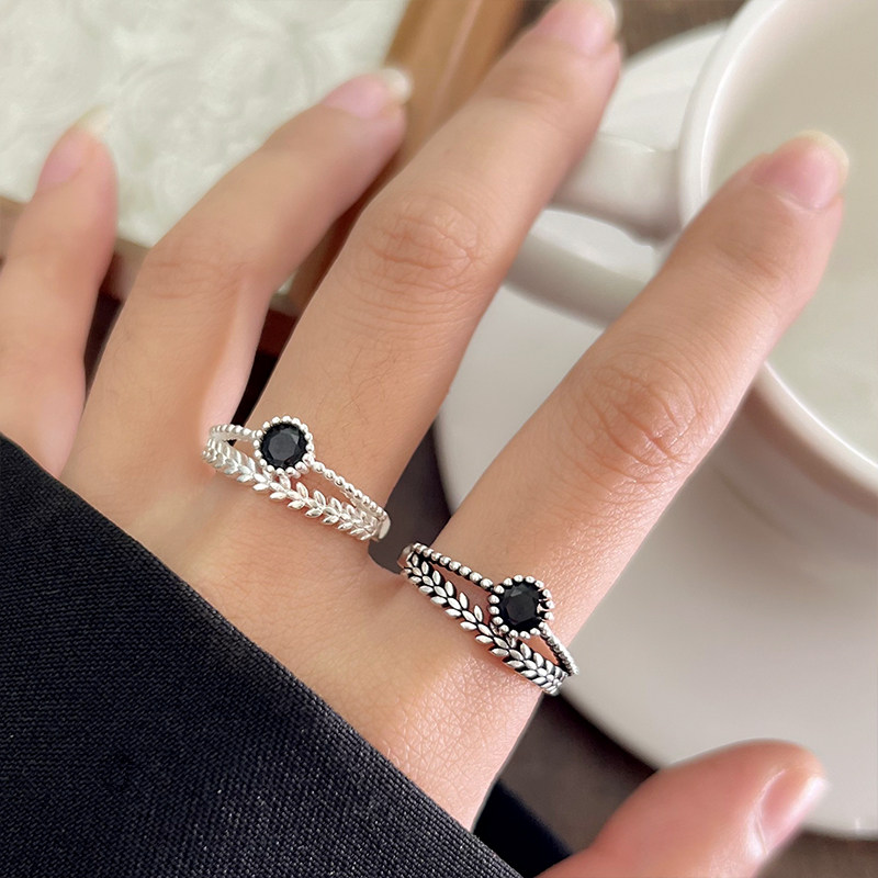 925银戒指不掉色黑色锆石麦穗个性小众设计感气质开口食指戒指