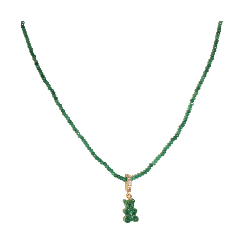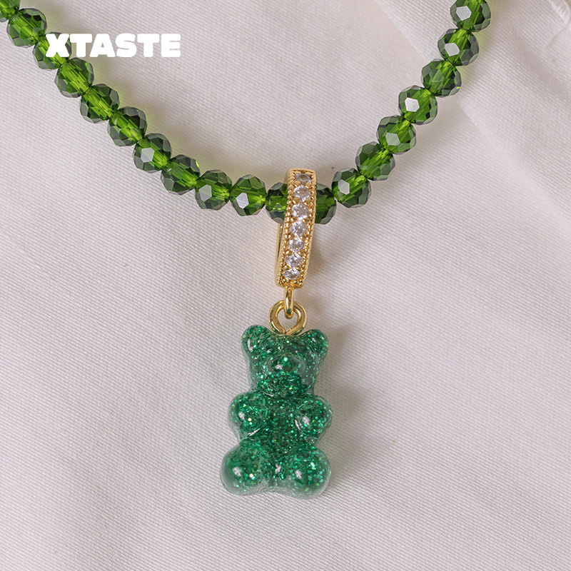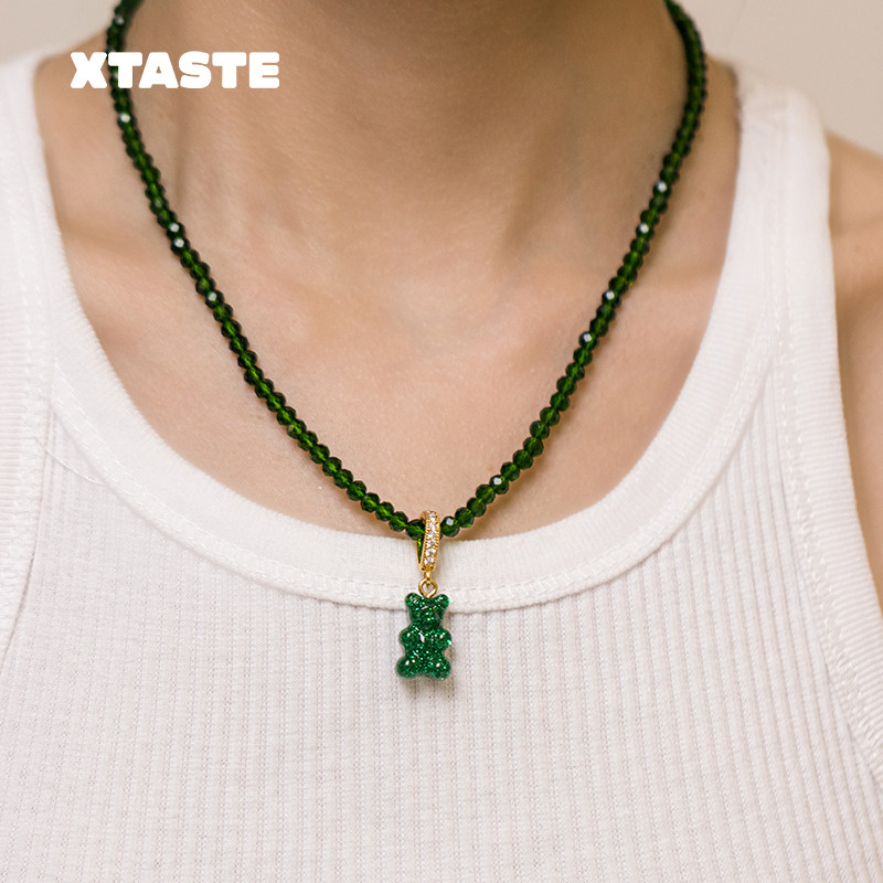 XTASTE 挪威 CRYSTAL HAZE亮片绿色小熊吊坠项链时尚通勤款百搭
