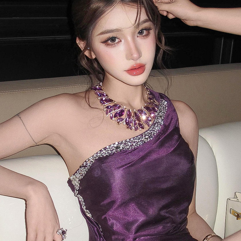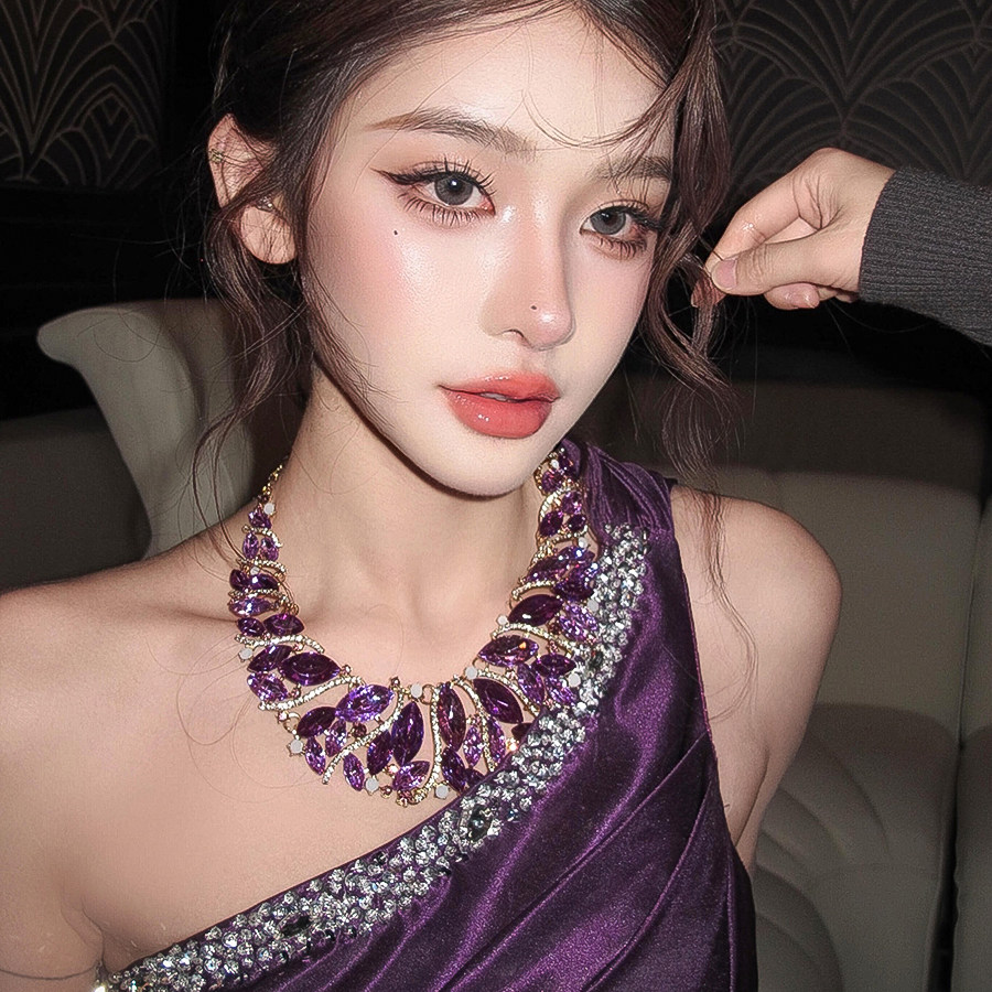 紫色水晶轻奢气质项链耳环套装夸张设计感颈链高级感礼服配饰女