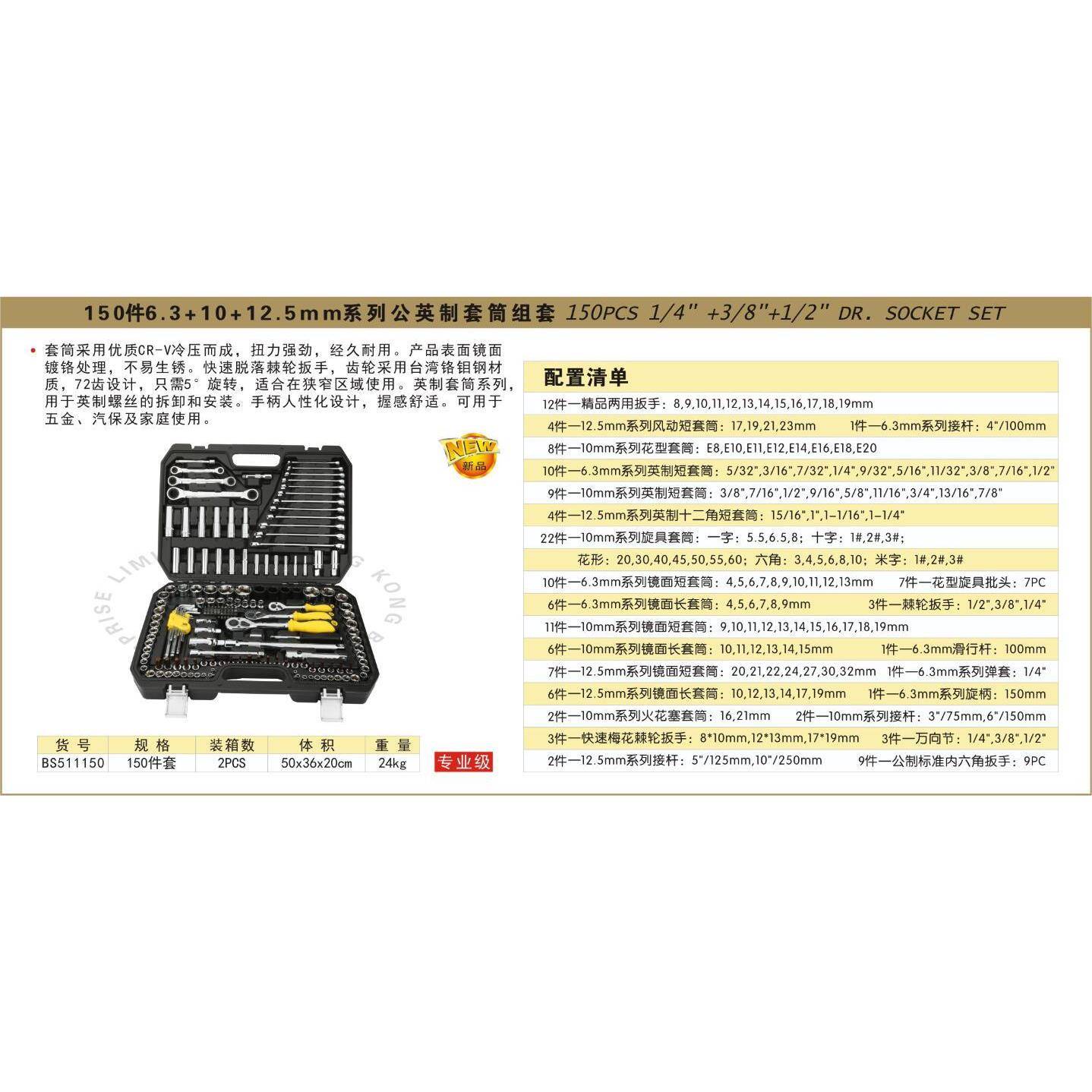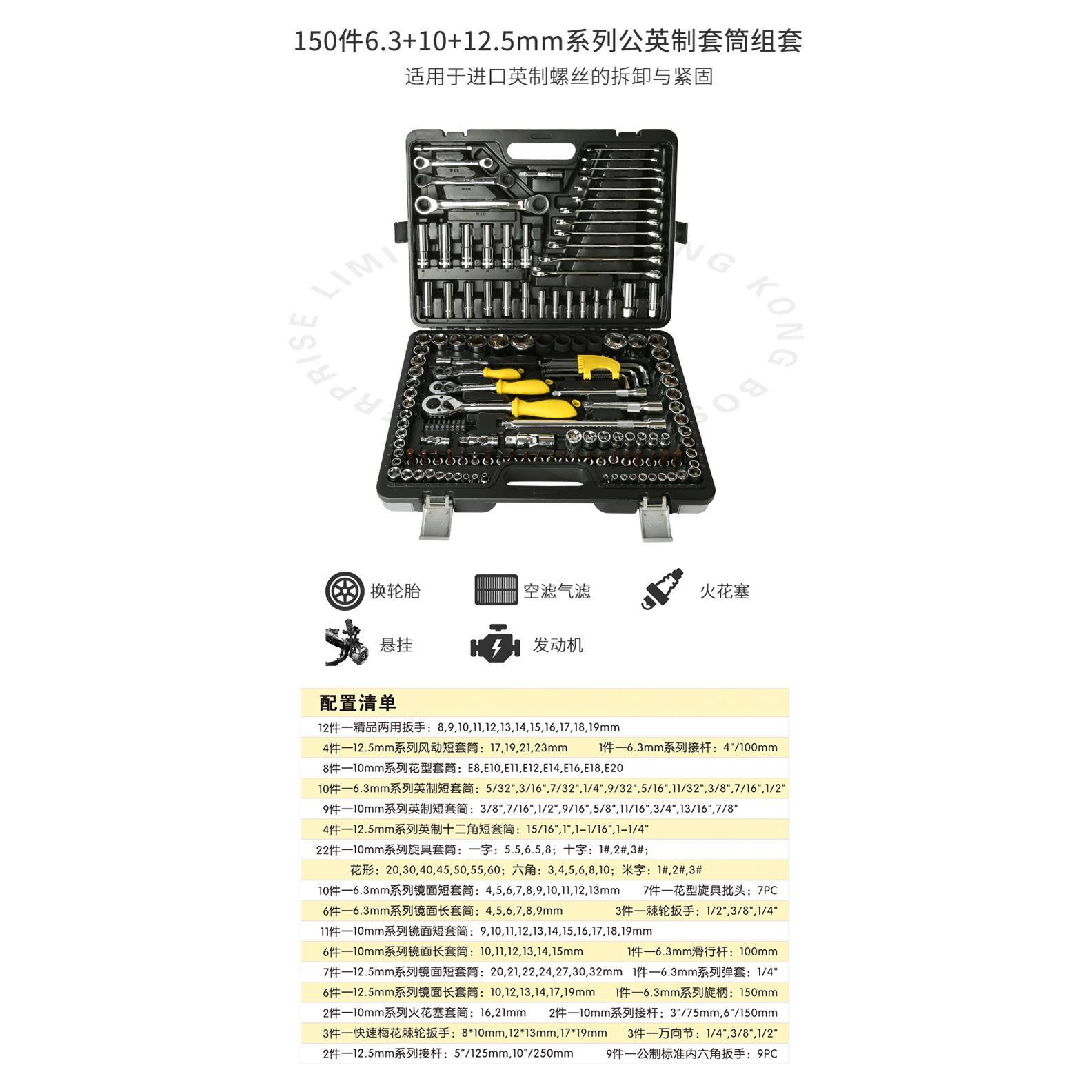 波斯150件公制英制套筒组套机修组套汽车维修综合组套工具套装