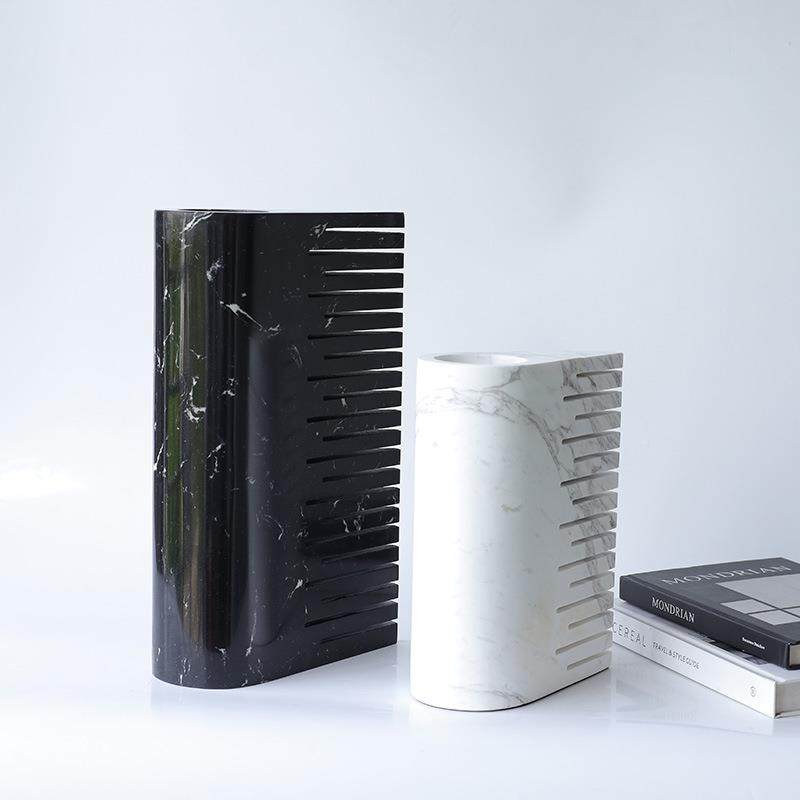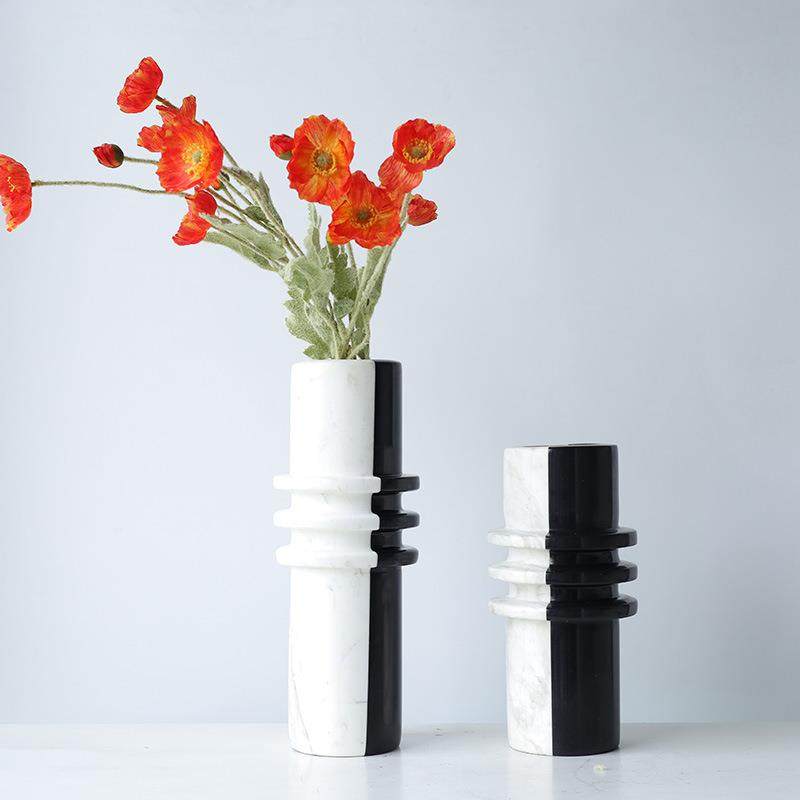 现轻奢新中式黑色大理层样叠花器BJ0045客厅代餐石厅花瓶板房饰品