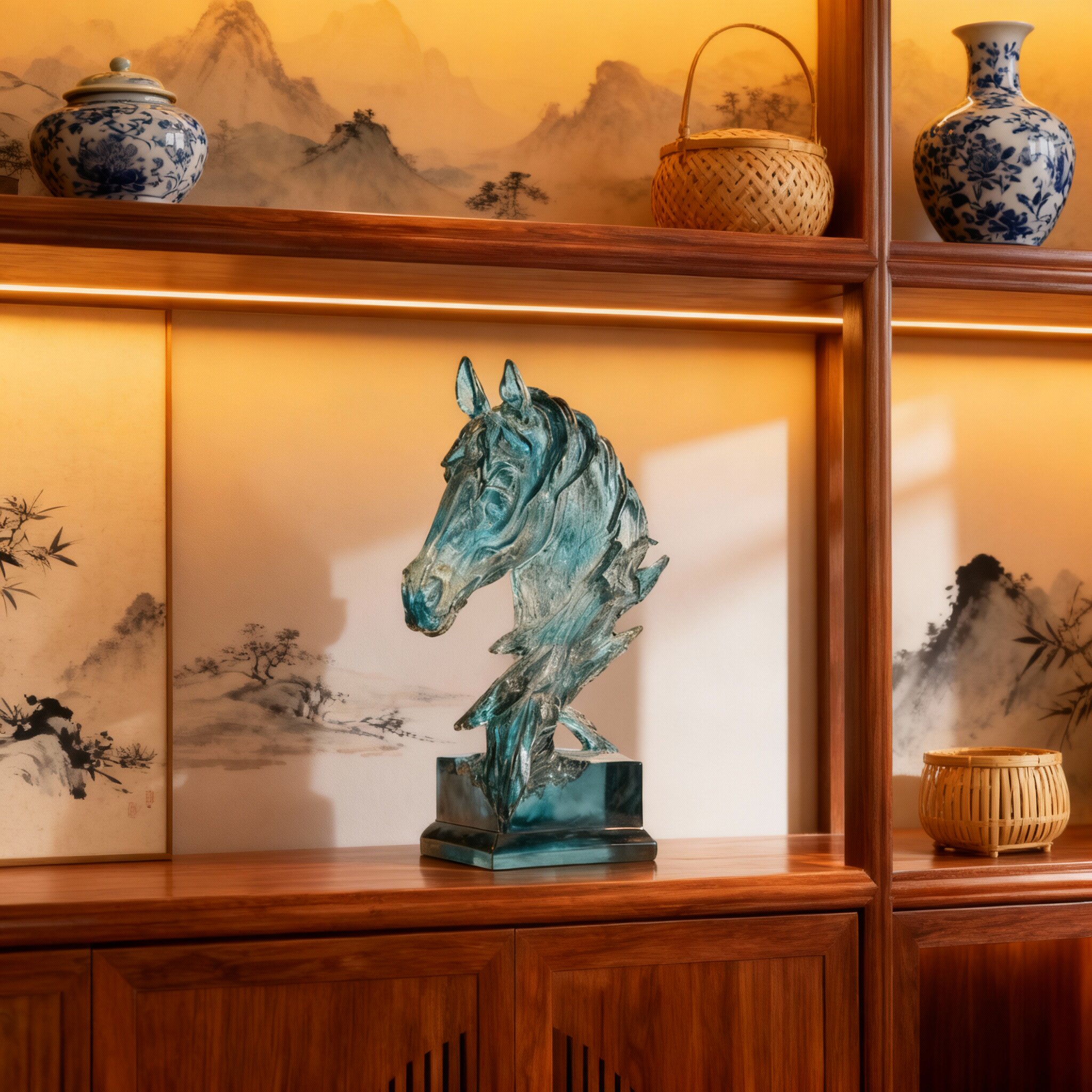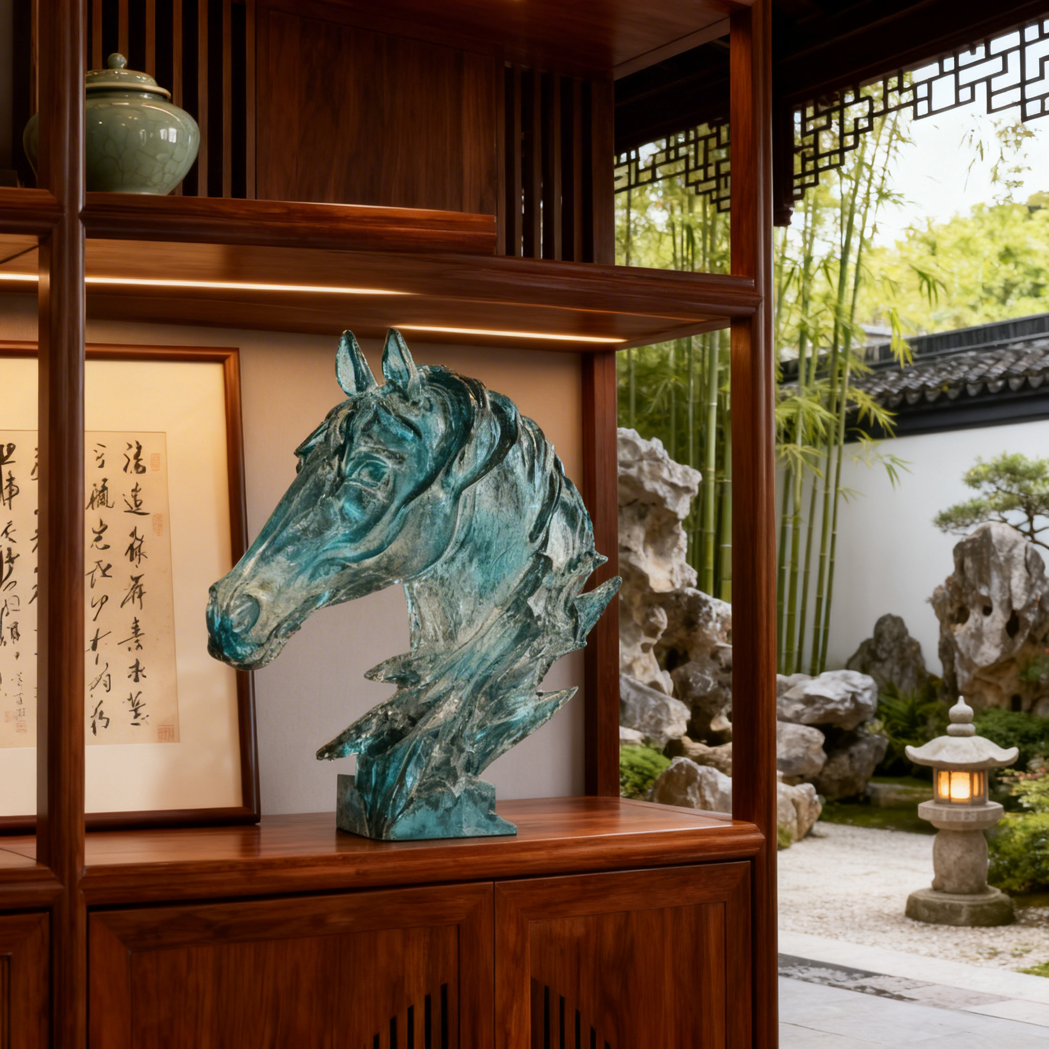蓝色玻璃马头装饰摆件客厅书房艺术品家居饰品