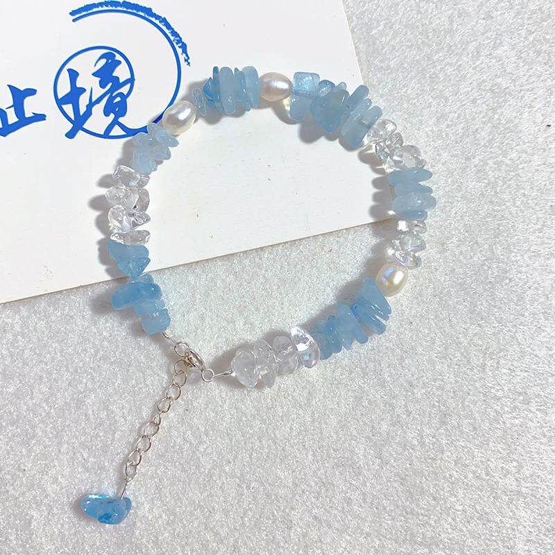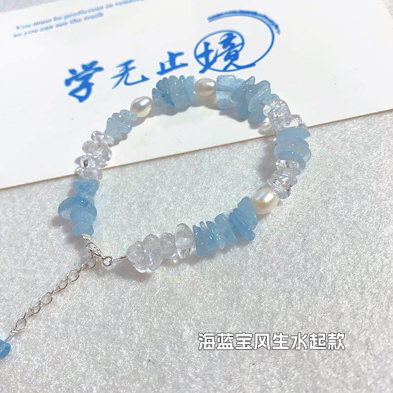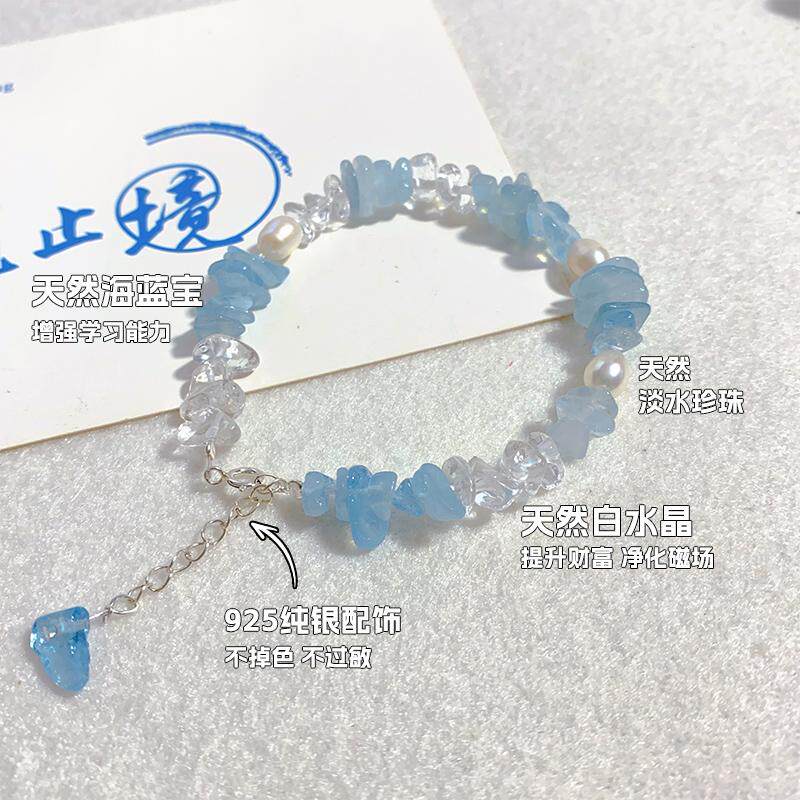 海蓝宝白水晶珍珠手链女 新中式设计感好运精致小众蓝色水晶手串